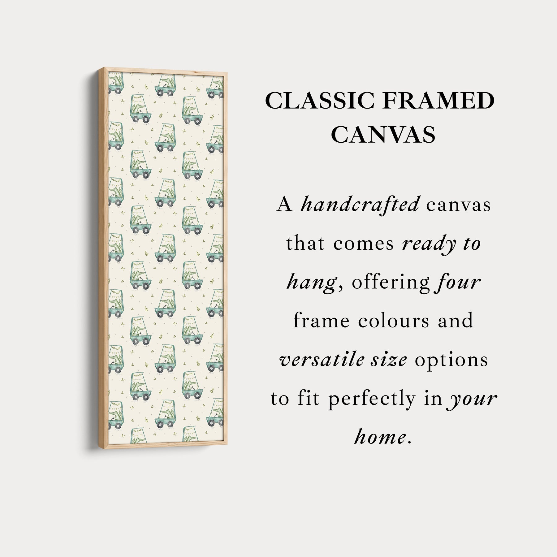 This seamless pattern features an adorable baby crocodile driving a golf cart, blending playful charm with soft boho elements. The sage green color palette adds a soothing and modern touch, while the neutral background keeps the design light and airy. Delicate hand-drawn details and subtle textures enhance the whimsical feel, making it both stylish and fun.