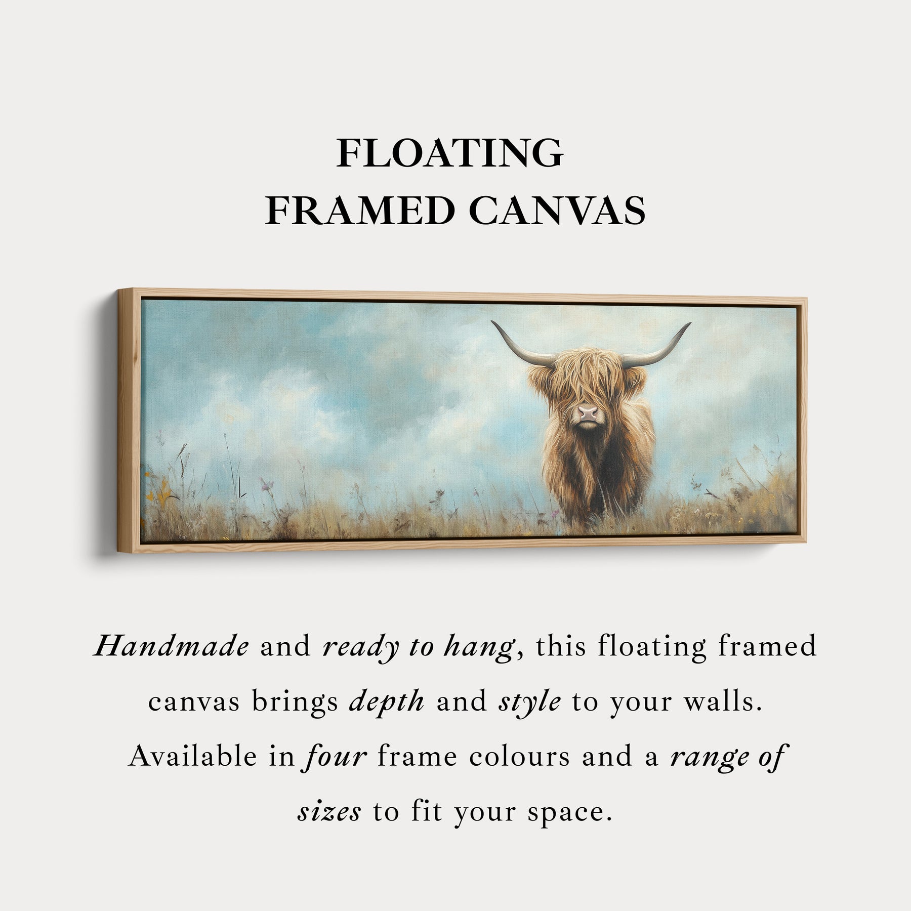 Highland Cow in Misty Meadow Panoramic Wall Art