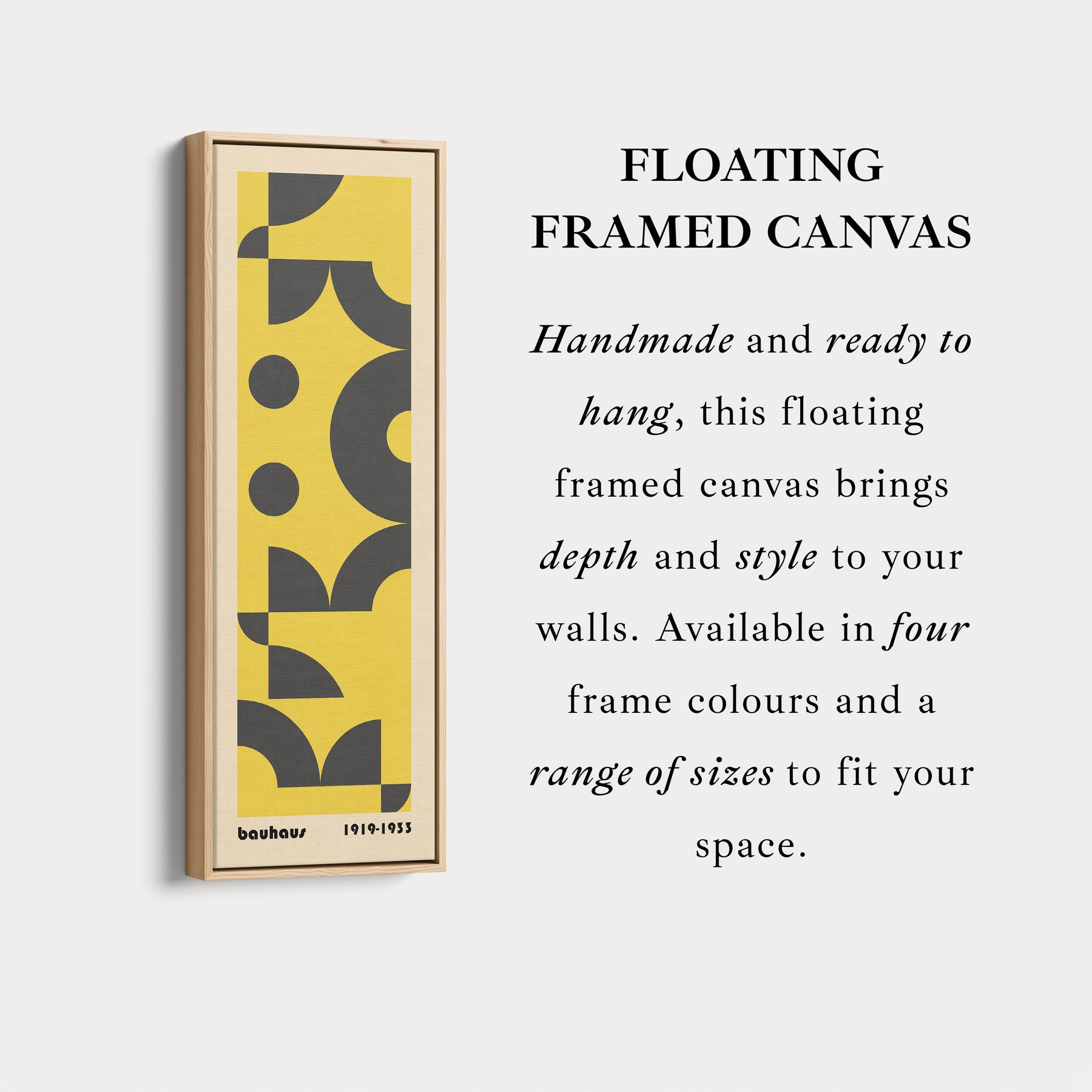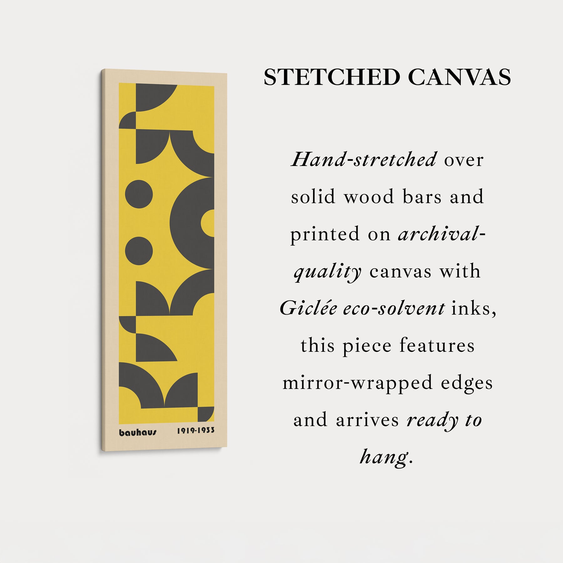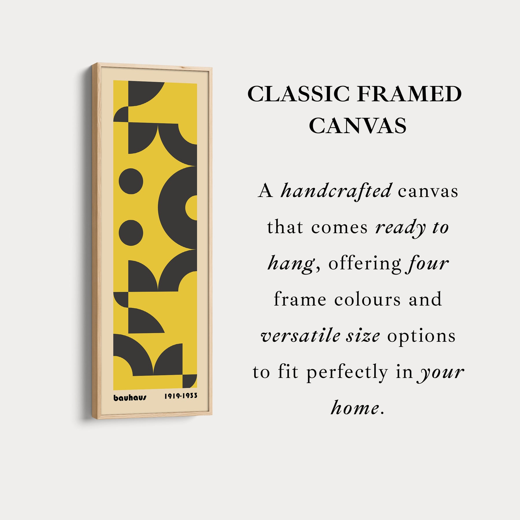 This Bauhaus canvas features oversized half circles and geometric shapes in navy blue and beige. A modern design with structured simplicity. Perfect for bedrooms, offices, or hallways, this vertical framed canvas adds calm Bauhaus elegance.