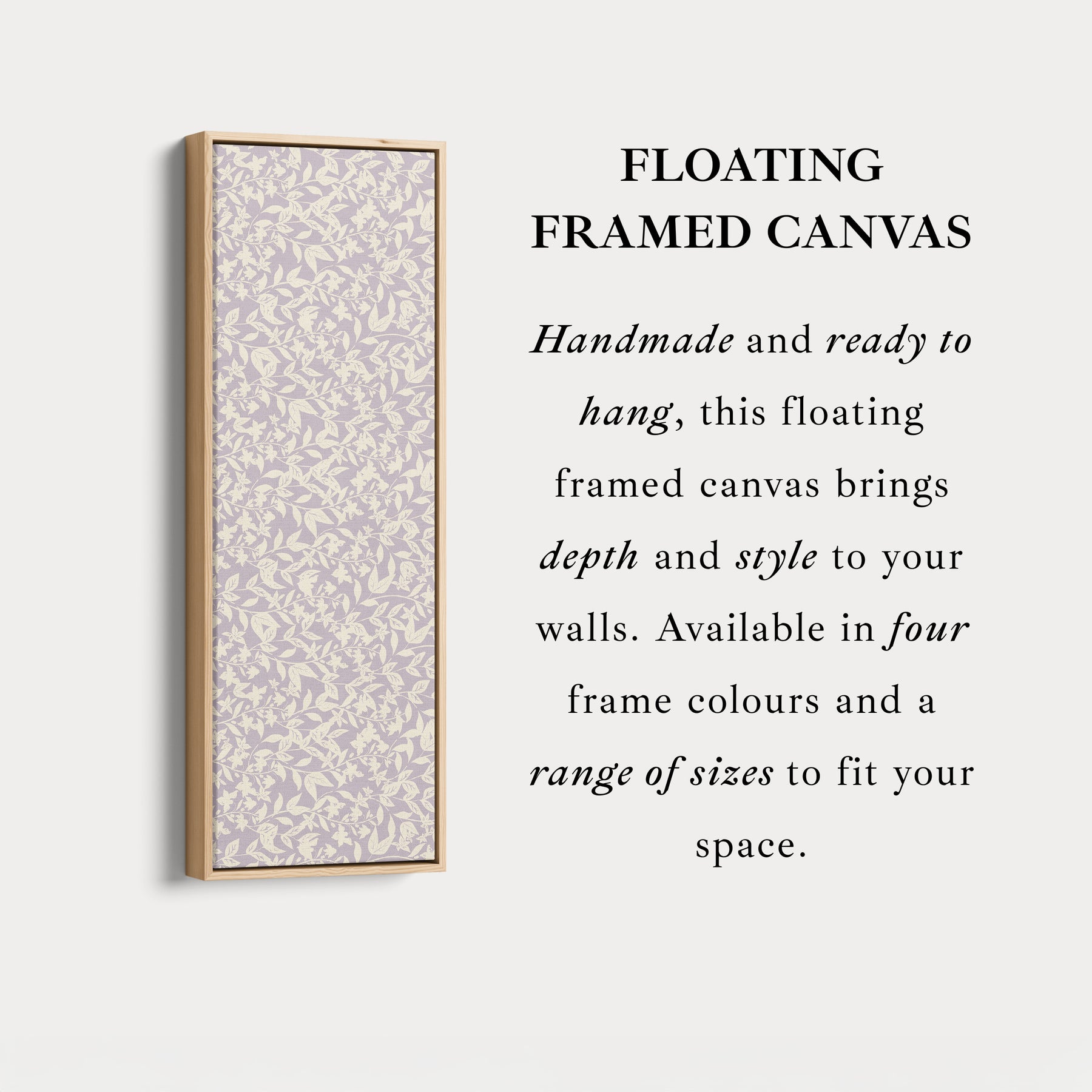 Ideal for vertical wall art, this pattern brings a soft and elegant botanical touch to wide spaces such as bedrooms, living rooms, or creative studios. As a large wide skinny canvas, it serves as a graceful focal point, complementing modern, minimalist, or vintage interiors. The combination of delicate floral elements and a soothing purple background makes this artwork a timeless and stylish addition to any space.