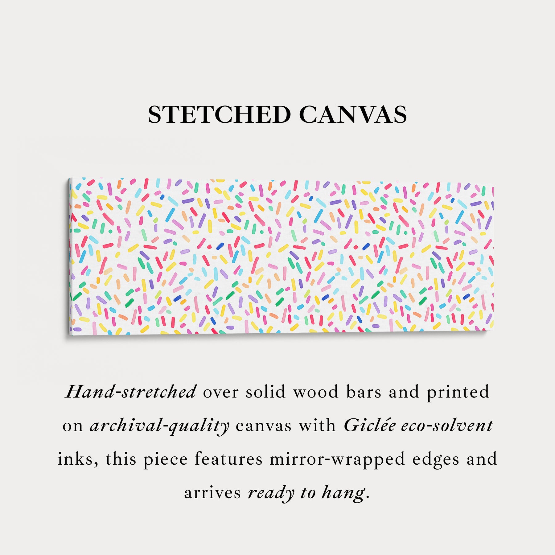 Ideal for horizontal wall art, this pattern brings a cheerful and lighthearted touch to wide spaces such as kitchens, kids' rooms, or play areas. As a large panoramic canvas, it serves as a vibrant focal point, seamlessly blending with modern, minimalist, or playful interiors. The combination of hand-drawn textures and bold, colorful sprinkles makes this artwork a fun and dynamic addition to any space.