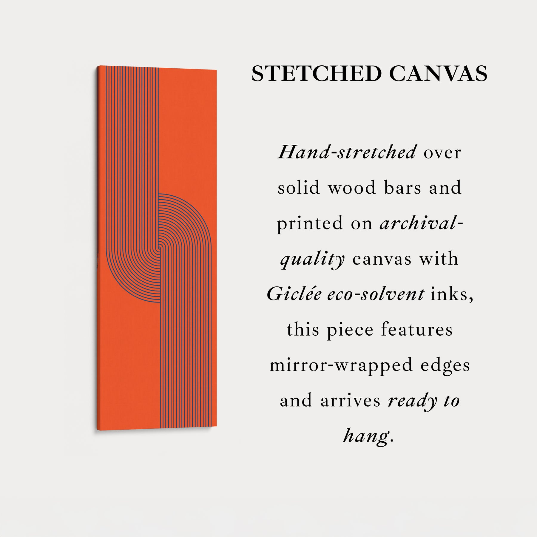 This vibrant retro-inspired framed canvas features bold navy blue curved lines set against a striking red background. The vertical composition creates a dynamic and rhythmic energy, while the minimalist design feels both vintage and modern. Perfect for hallways, living rooms, or creative studio spaces, this tall wall art adds a bold splash of color.