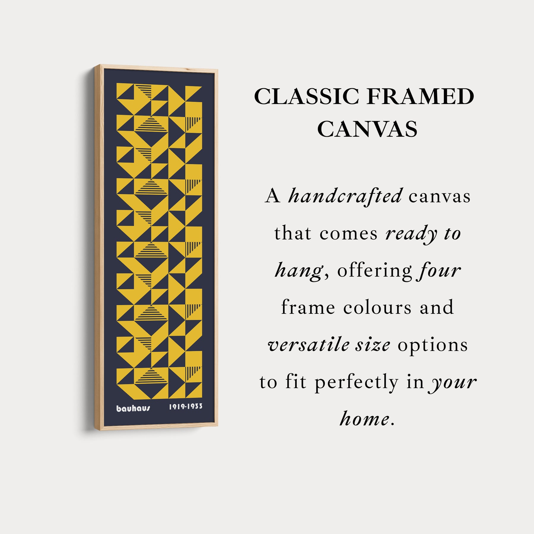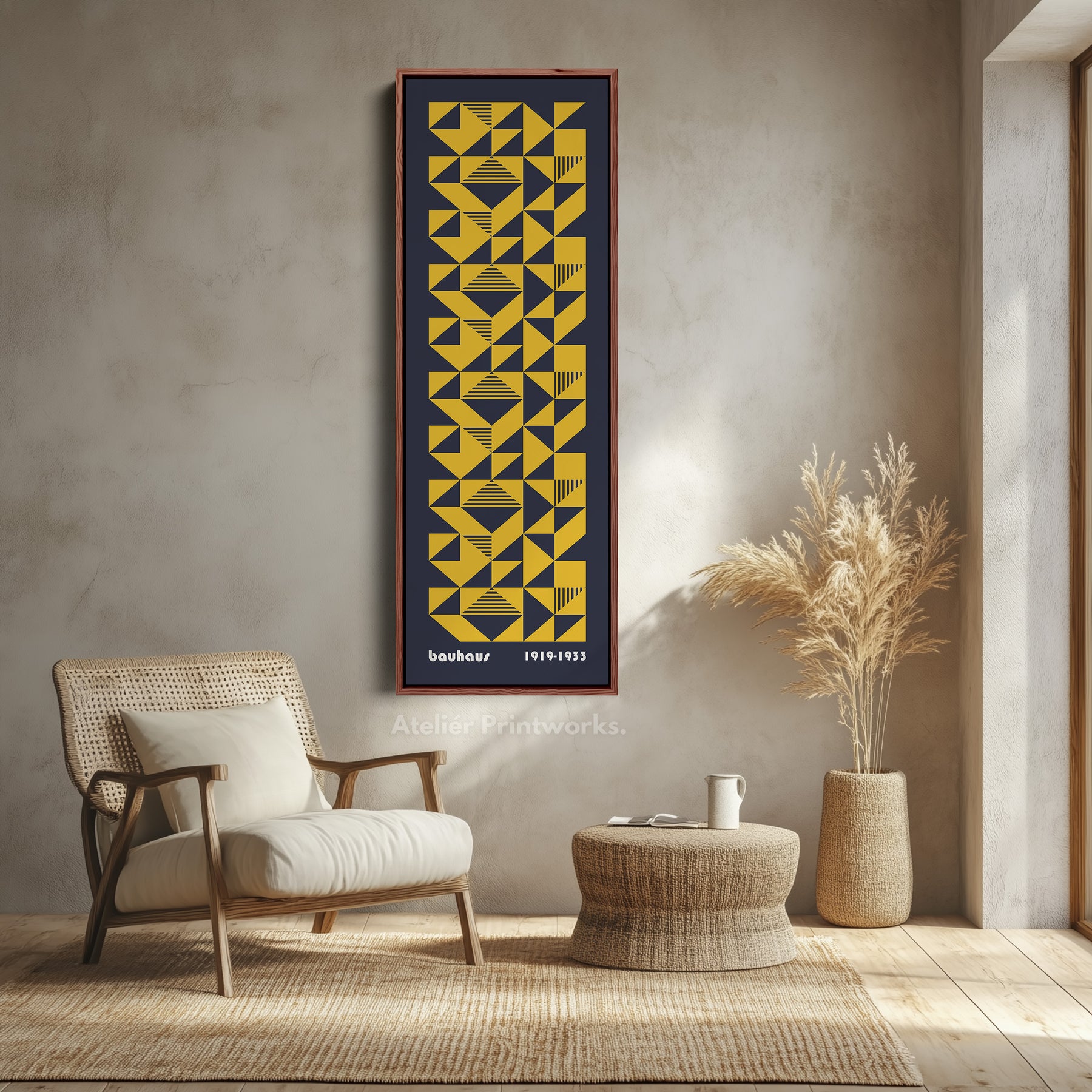Ideal for tall narrow wall art, this piece adds a striking and artistic touch to vertical spaces such as hallways, bedrooms, or office corners. As Bauhaus mid-century modern framed canvas wall decor, it serves as a bold focal point, seamlessly blending with retro, industrial, or minimalist interiors. The combination of geometric precision and a refined color palette makes this artwork a stylish and versatile addition to any space, perfect for those who appreciate modernist design with a contemporary edge