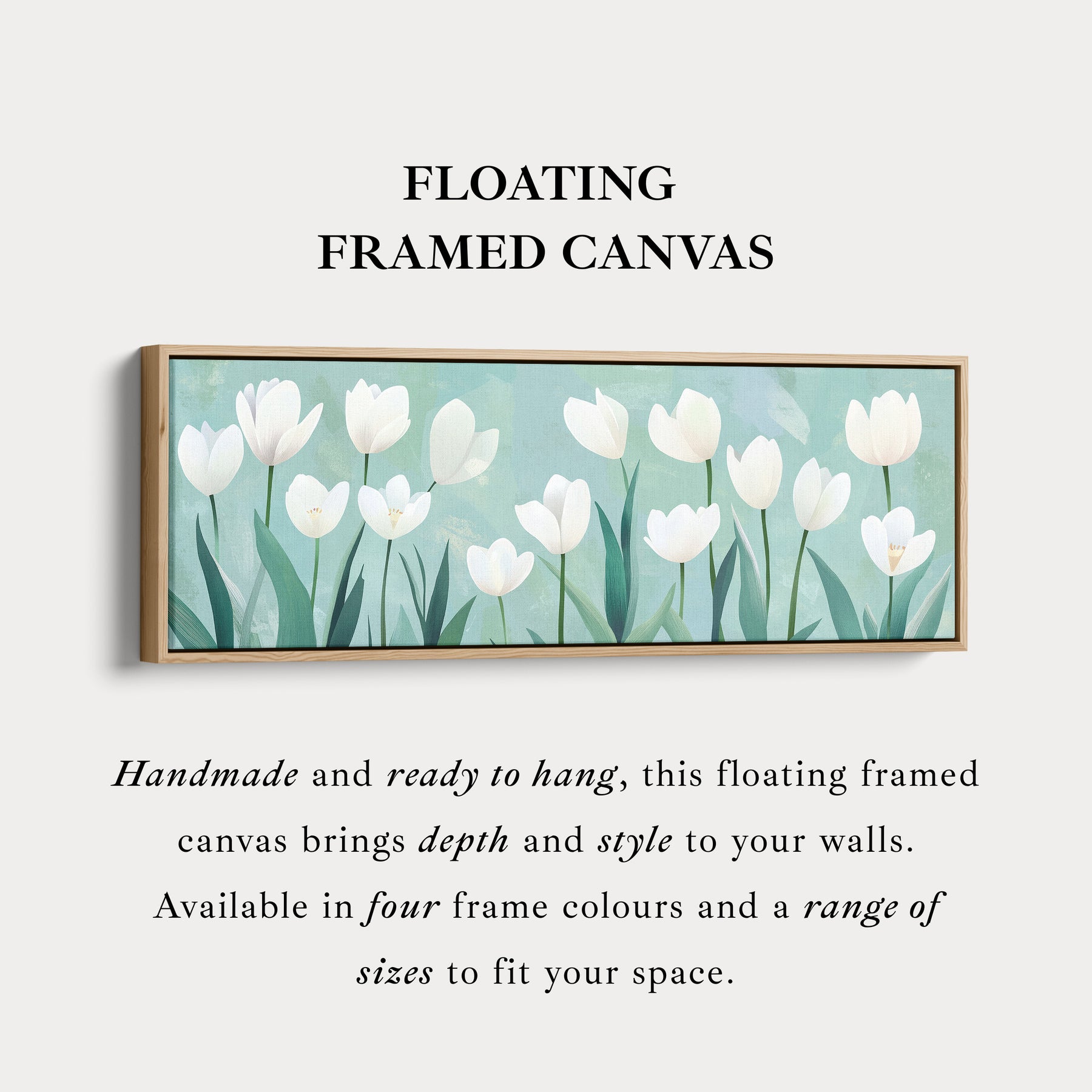 Perfect for panoramic canvas prints, this artwork enhances wide spaces with its understated charm. As panoramic wall art, it adds elegance and freshness to larger walls, while its minimalist design makes it an excellent choice for wide wall art. Ideal as horizontal wall art, it serves as a calming focal point above a sofa, bed, or console. Its elongated composition complements long narrow wall art perfectly, offering a refined and tranquil accent to hallways, offices, or dining areas. This painting celebrates the simplicity and beauty of tulips in a modern, artistic way.