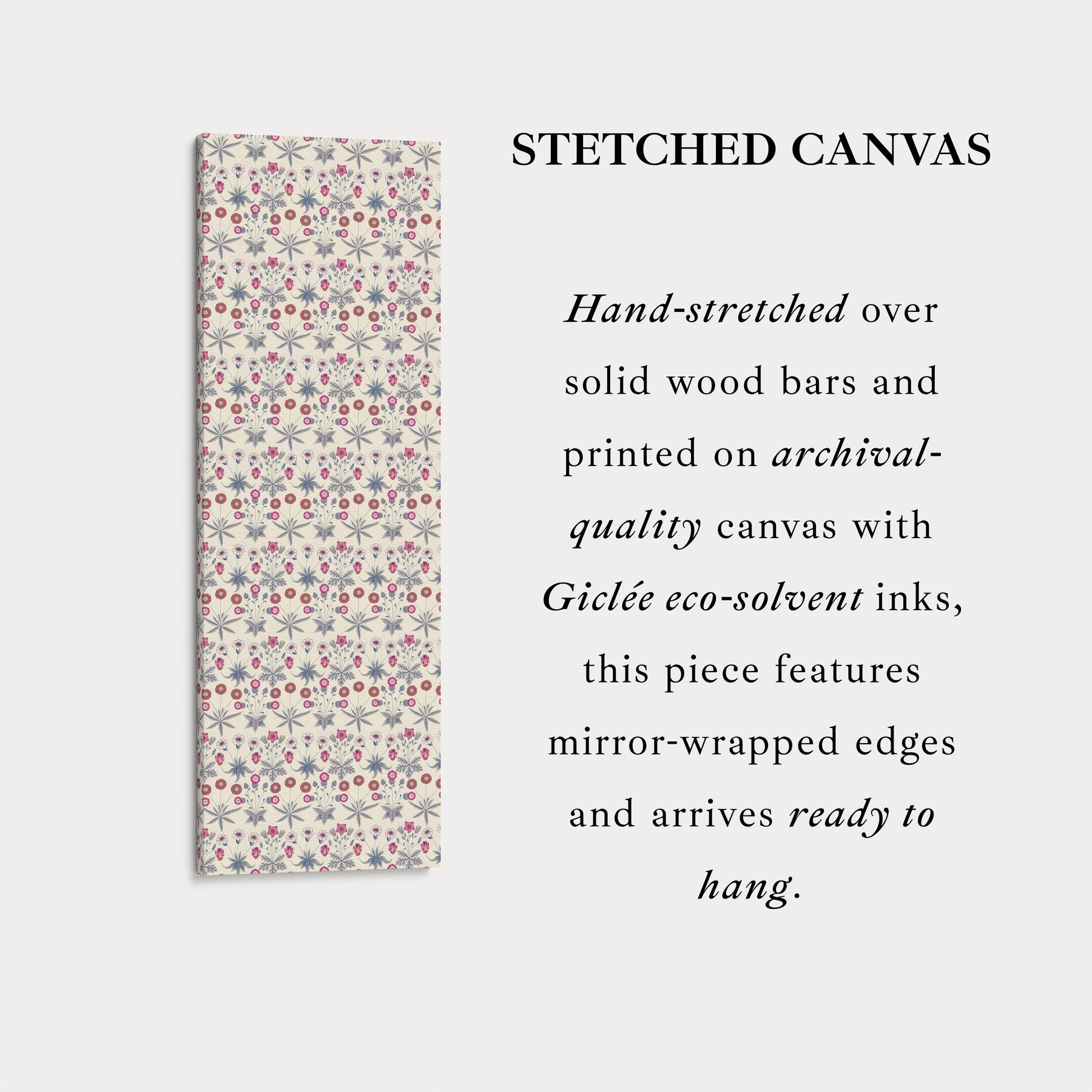 perfect for vertical wall art, this pattern brings a refined and nature-inspired touch to tall spaces such as entryways, hallways, or bedroom corners. as a large framed canvas, it serves as a stunning focal point, seamlessly blending with vintage, cottagecore, or traditional interiors. the combination of detailed floral elements and soft, muted tones makes this artwork a stylish and classic addition to any space, ideal for those who appreciate heritage patterns with an artistic touch.