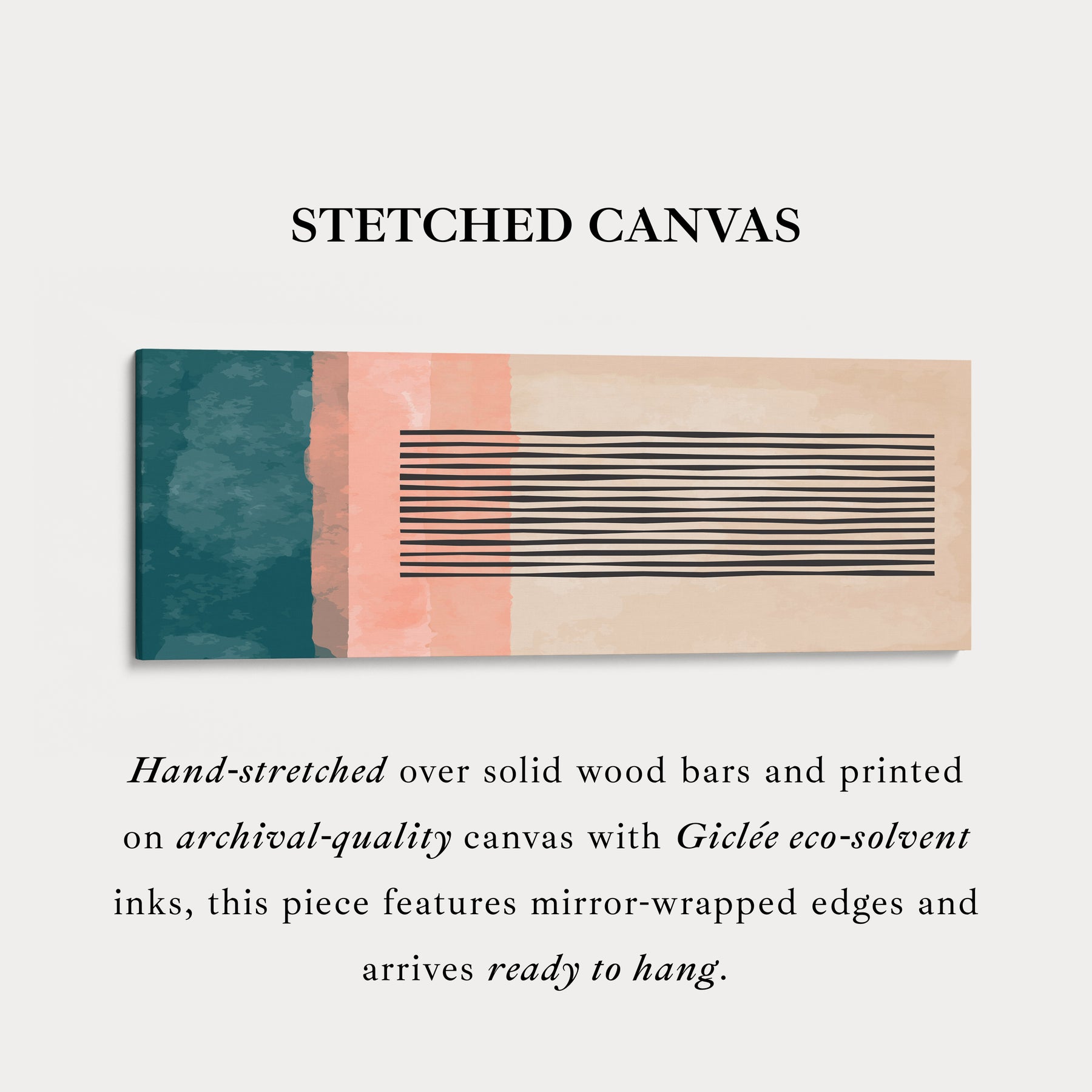 Panoramic Wall Art Teal Green And Coral Abstract Striped Design For Living Room