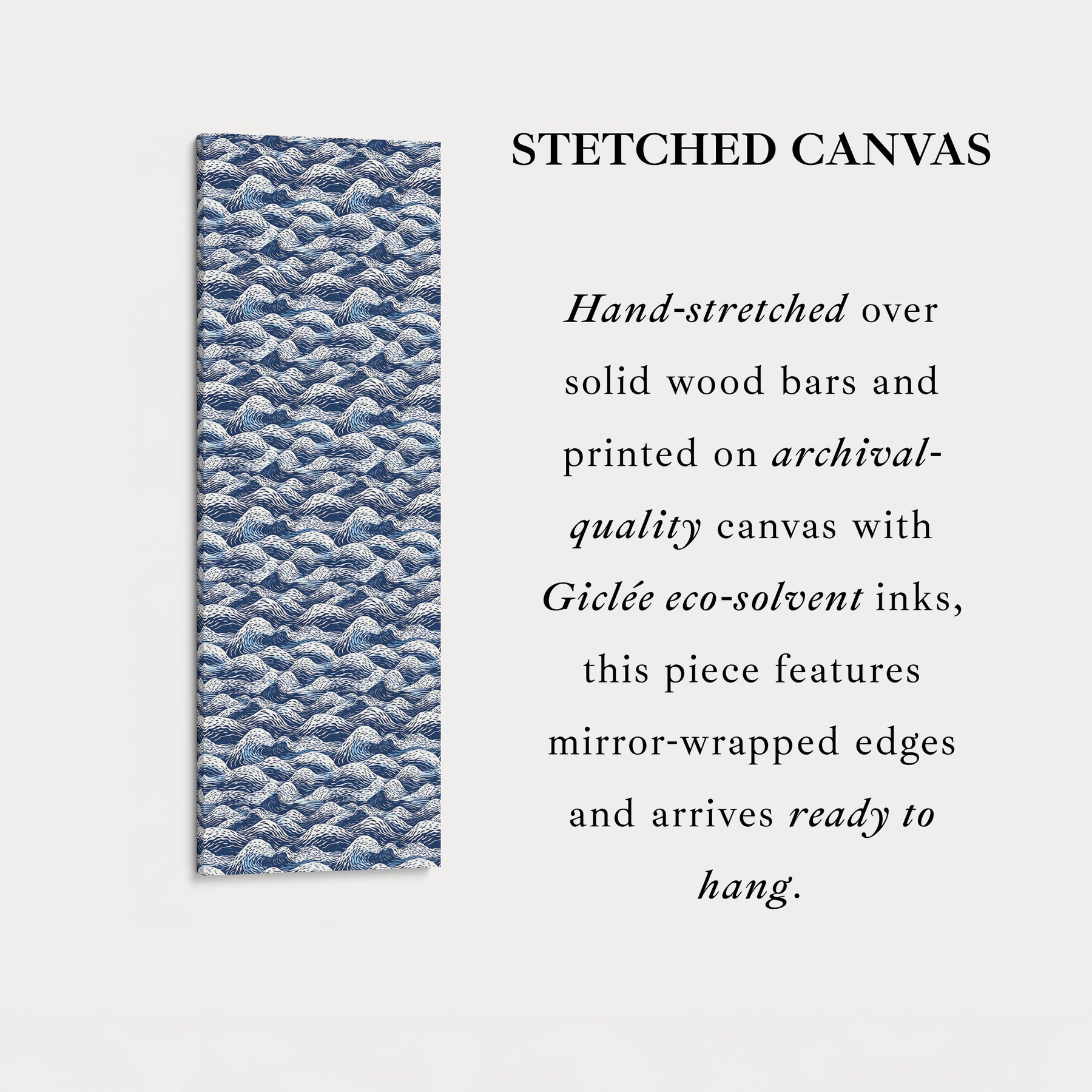 Ideal for vertical wall art, this pattern adds a serene yet energetic touch to tall spaces such as entryways, hallways, or meditation areas. As a large vertical canvas, it serves as a striking focal point, seamlessly blending with minimalist, modern, or coastal-inspired interiors. The balance of artistic detail and clean composition makes this wave pattern a refined and versatile addition to any space inspired by the ocean and Japanese aesthetics.