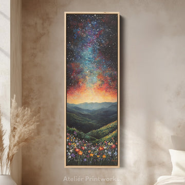 Just finished updating a couple of bathrooms and ordered “Night Sky” to break up the white walls in the 1st bathroom we completed. It’s a lovely piece and fits perfectly. Easy to order, fast delivery, and ready to hang. I just ordered a second canvas for the 2nd bathroom. Can’t wait to see it!