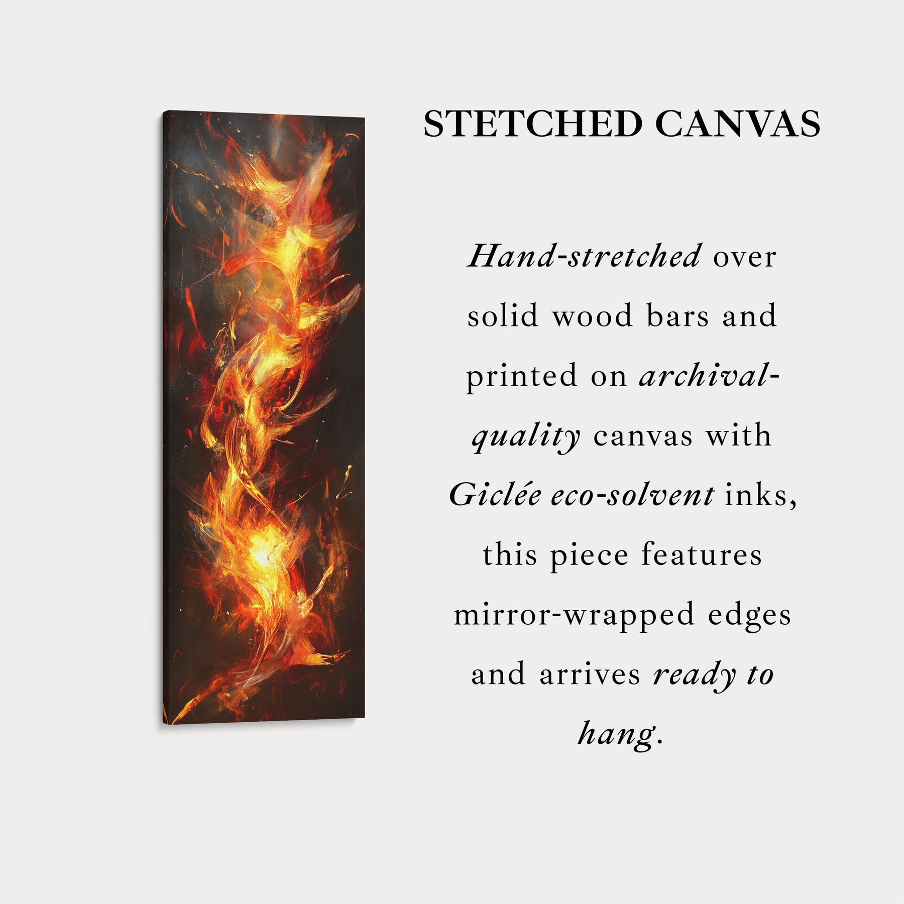 Ideal as vertical wall art, it brings energy and drama to tall spaces, such as beside doorways or in cozy nooks. Perfect for long narrow vertical wall decor, it adds depth and boldness to hallways, offices, or living rooms. As vertical art, it serves as a captivating focal point, while its vibrant composition complements framed pictures large or large canvas wall decor, offering a stunning and fiery accent to your space. This artwork celebrates the raw beauty and intensity of fire in a bold and expressive style.