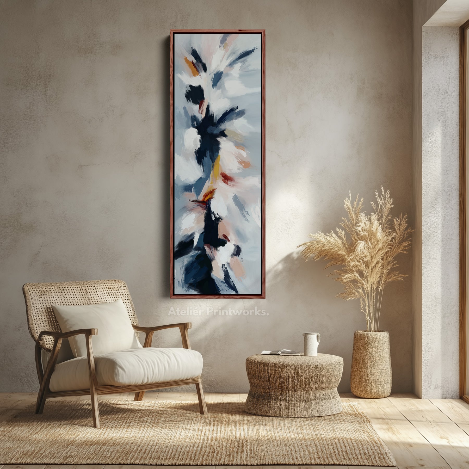 Perfect as vertical wall art, this piece beautifully enhances tall, narrow spaces such as beside doorways or in cozy nooks. Its refined composition makes it an excellent choice for long vertical abstract wall art, bringing elegance and artistic depth to hallways, offices, or entryways. For compact areas, it works wonderfully as thin wall art, offering a sleek and contemporary accent to smaller spaces. This artwork complements modern, minimalist, and monochromatic décor, adding a touch of sophistication to your home.
