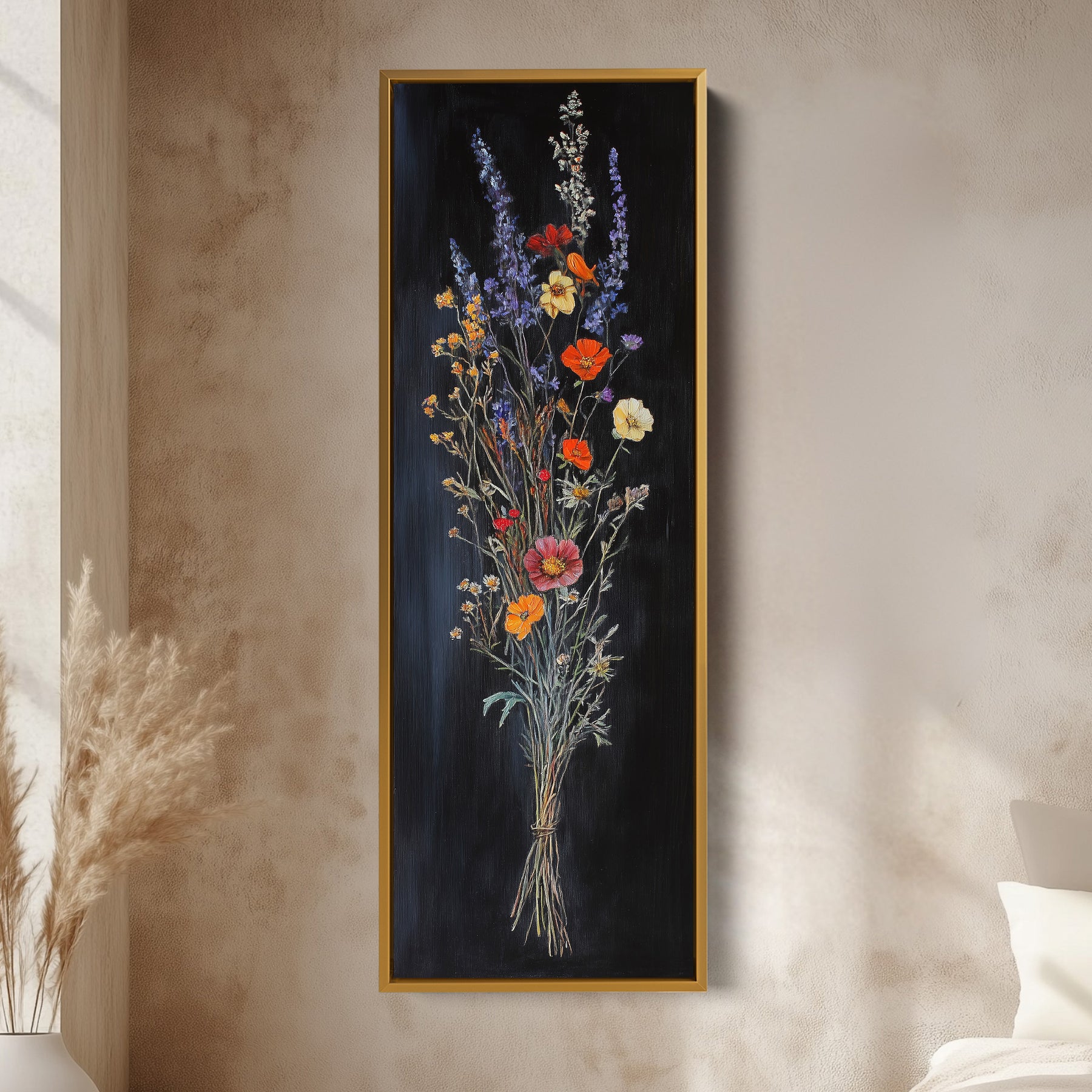 Wild Flower Kitchen Wall Art Long Vertical Framed Canvas Decor