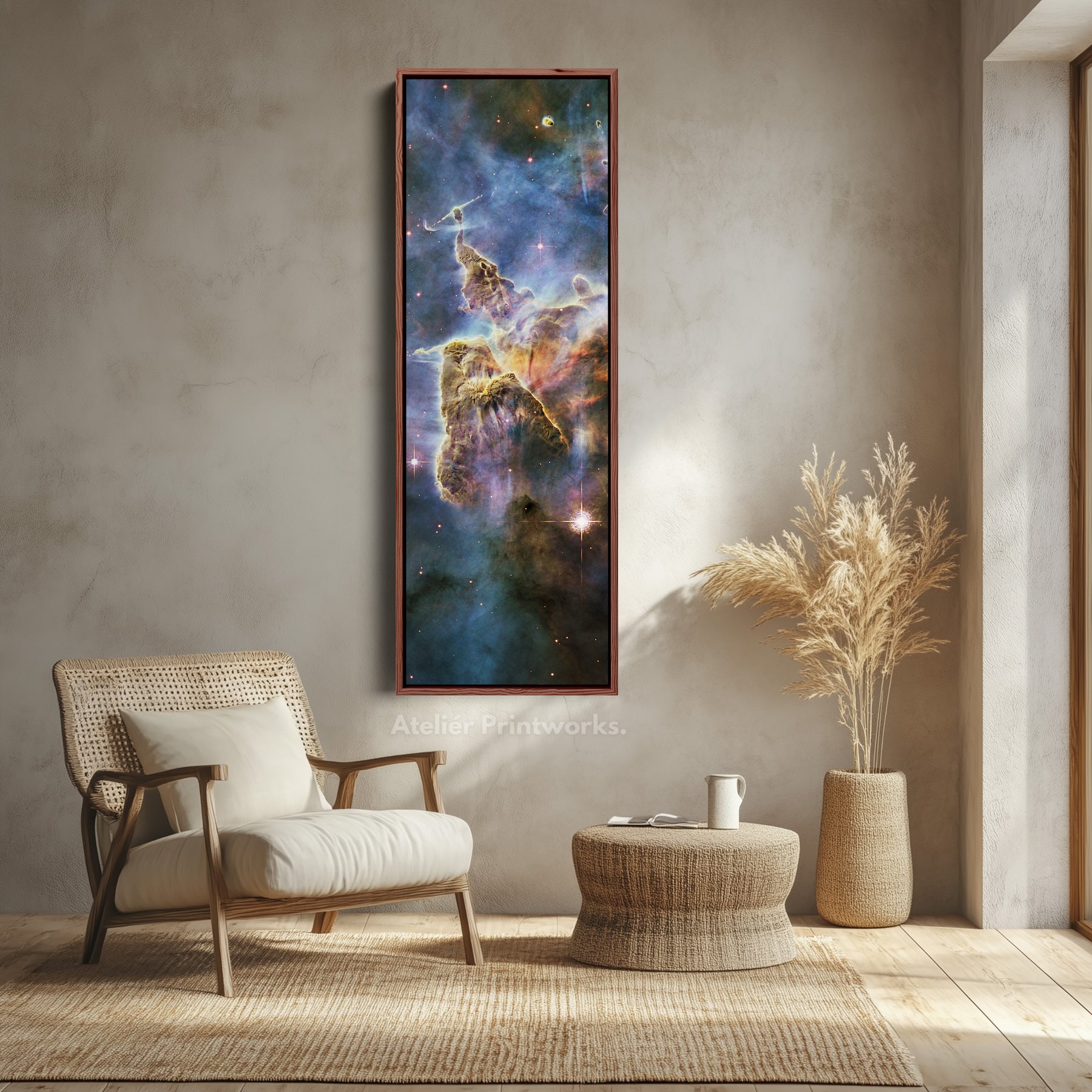 Ideal for tall narrow wall art, this piece adds a mesmerizing and celestial touch to vertical spaces such as hallways, bedrooms, or office corners. As large narrow canvas wall art, it serves as a stunning focal point, seamlessly blending with modern, minimalist, or science-inspired interiors. The combination of vivid cosmic imagery and astronomical wonder makes this artwork a captivating addition to any space, perfect for those who appreciate the mysteries and beauty of the universe.