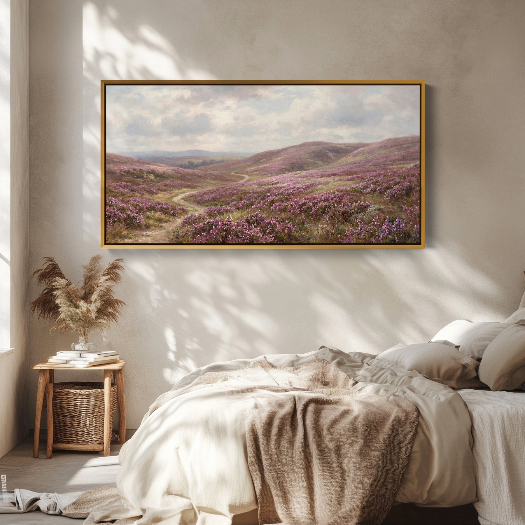 Heather Moorland wide framed canvas Panoramic Canvas Print Bedroom