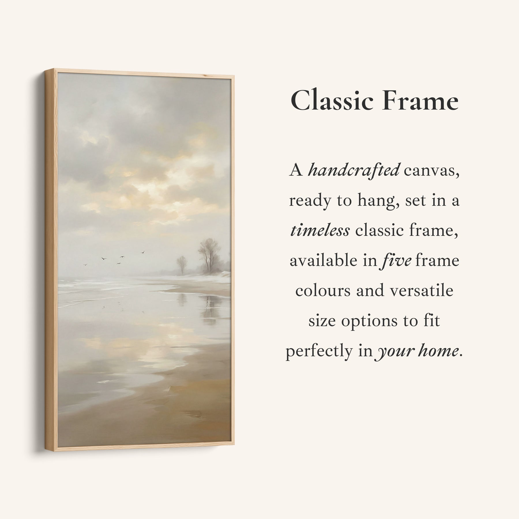 We specialise in tall vertical and wide horizontal framed canvas wall art designed for awkward or hard-to-style spaces. Our curated collection features abstract, geometric, vintage and Japanese inspired designs, available in a range of sizes and five frame colours to complement any interior. Choose from sleek modern profiles or more classic frame styles, each crafted to enhance the artwork and elevate the overall finish. From narrow hallways and tall alcoves to wide walls above a bed, every piece is created to transform empty spaces into something striking and thoughtfully styled.