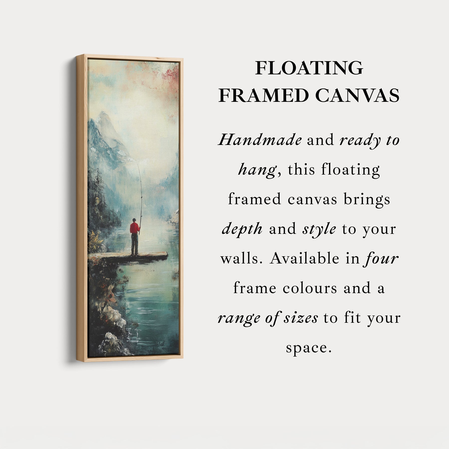 Ideal as vertical wall art, this piece enhances tall spaces with its calming and nostalgic atmosphere. Perfect for long narrow vertical wall decor, it adds depth and rustic charm to hallways, offices, or living rooms. As vertical art, it serves as a peaceful focal point, while its scenic composition complements framed pictures large or large canvas wall decor, offering a refined and nature-inspired accent to your space. This painting celebrates the serenity of fishing amidst breathtaking mountain landscapes.