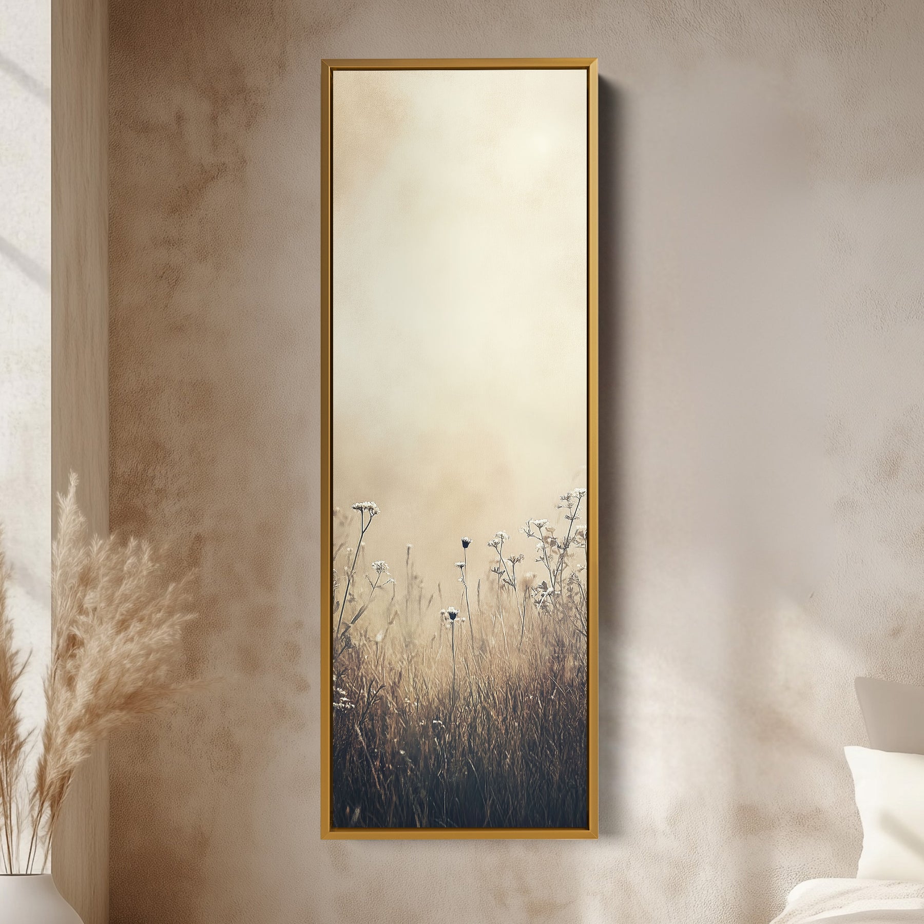 Perfect as vertical wall art, this piece enhances tall spaces with its calming presence. Ideal for long narrow vertical wall decor, it brings a refined and nature-inspired touch to hallways, offices, or bedrooms. As vertical art, it serves as a graceful focal point, while its soft tones and intricate details complement framed pictures large or large canvas wall decor, offering a timeless and peaceful accent to your space. This artwork celebrates the delicate beauty of an autumn meadow in a serene and artistic style.