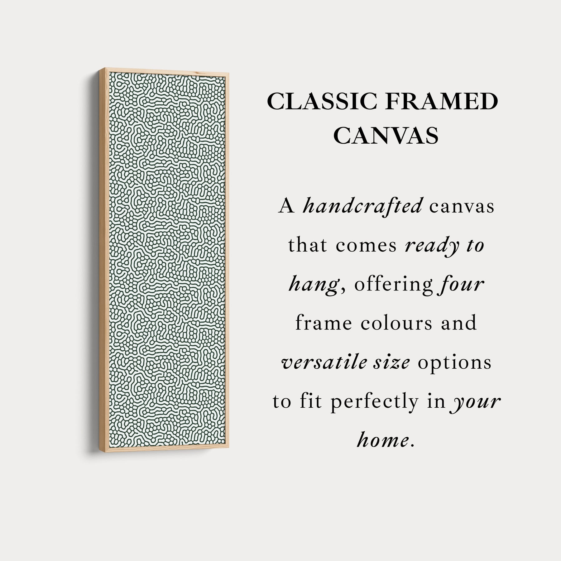 perfect for vertical wall art, this pattern brings a fresh and nature-inspired touch to tall spaces such as entryways, hallways, or bedroom corners. as a large framed canvas, it serves as a serene focal point, seamlessly blending with botanical, coastal, or minimalist interiors. the combination of delicate coral forms and the classic green and white palette makes this artwork a stylish and versatile addition to any space, ideal for those who appreciate organic patterns with a sophisticated and airy feel.