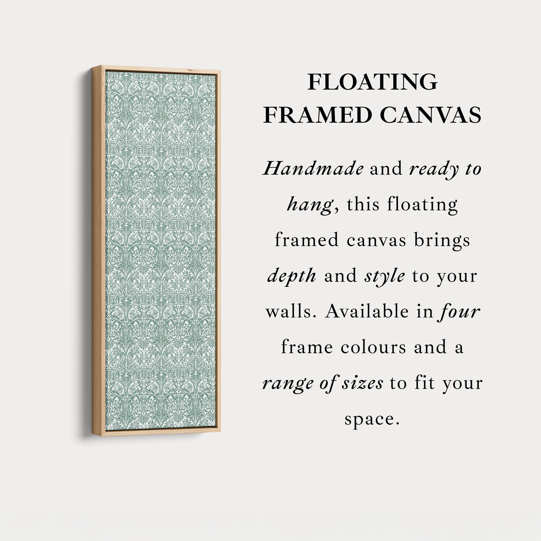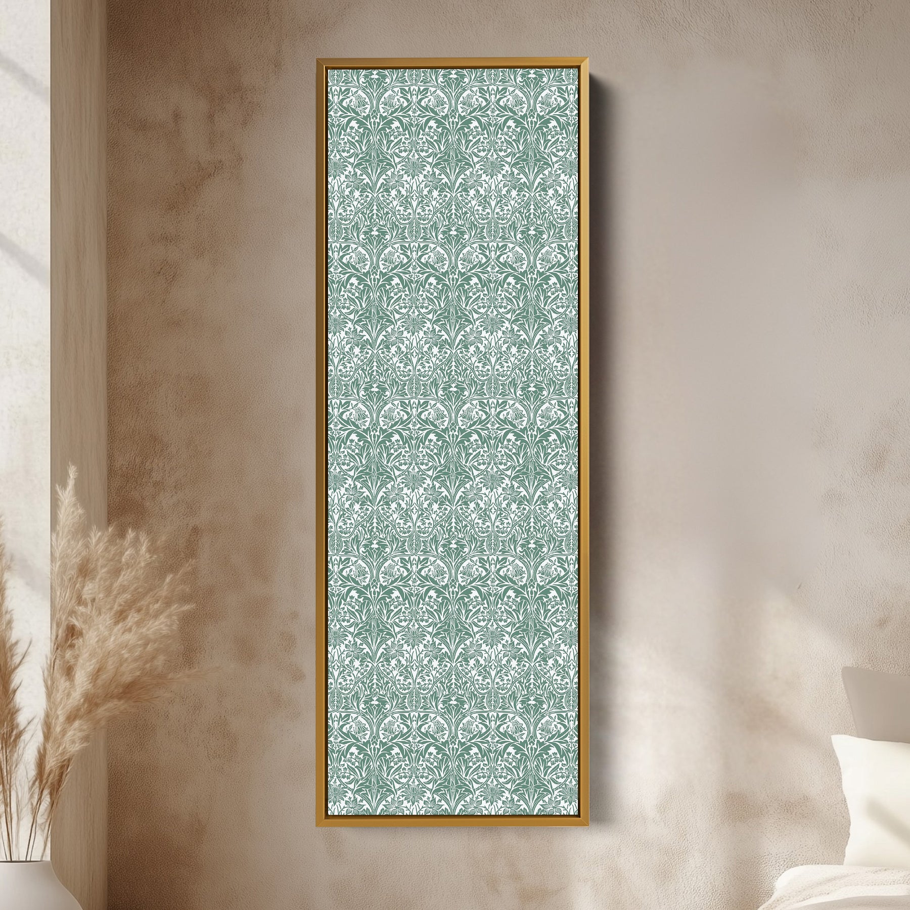 perfect for vertical wall art, this pattern brings a refined and heritage-inspired charm to tall spaces such as entryways, hallways, or bedroom corners. as a large framed canvas, it serves as a stunning focal point, seamlessly complementing vintage, cottagecore, or traditional interiors. the combination of intricate floral detailing and soft contrast makes this artwork a timeless and stylish addition to any space, ideal for those who appreciate classic design with a touch of botanical beauty.