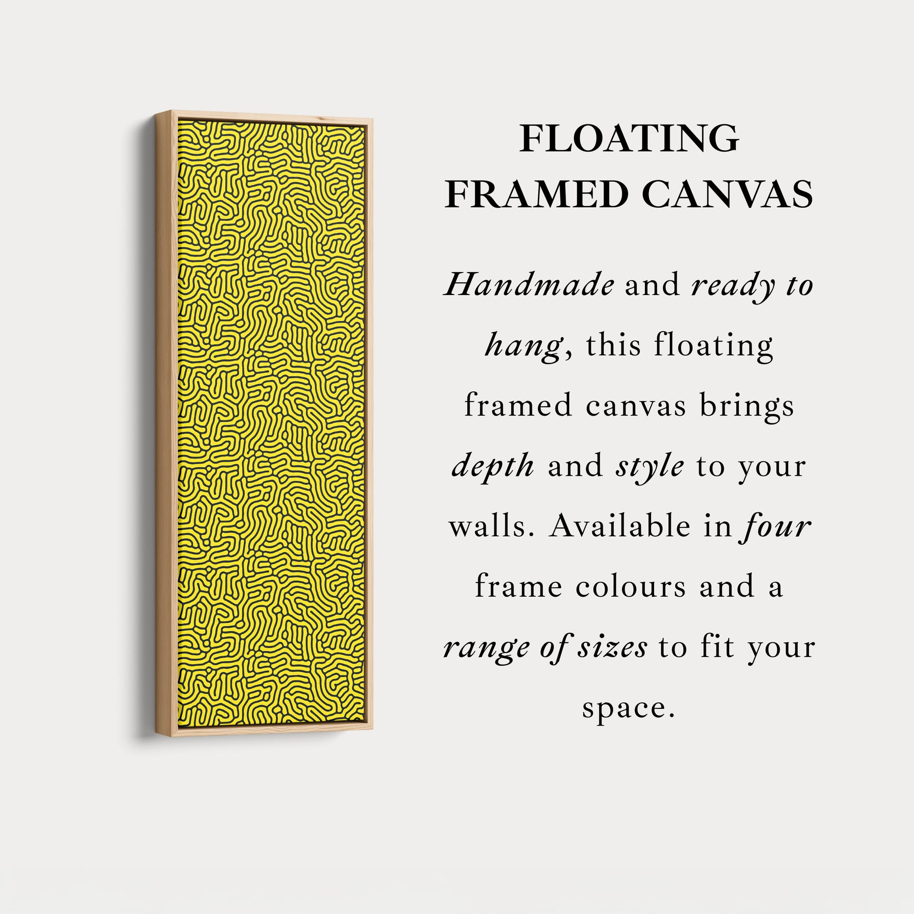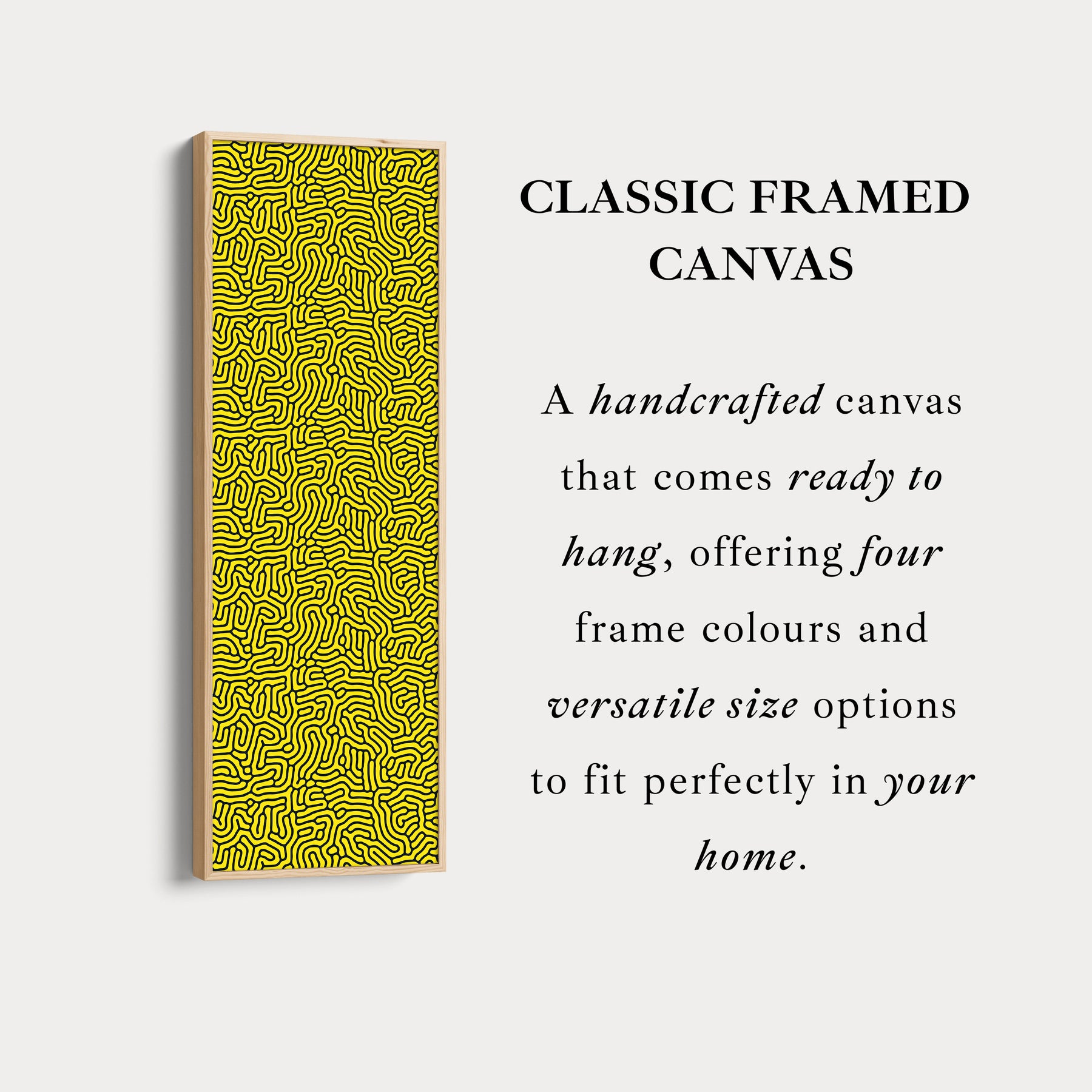 Perfect for vertical wall art, this pattern adds a bold and stylish touch to tall spaces such as entryways, hallways, or bedroom corners. As a large framed canvas, it serves as a statement piece, blending effortlessly with contemporary, nautical, or abstract interiors. The combination of organic coral shapes and the striking contrast of yellow and black makes this artwork a bold and unique addition, ideal for those who appreciate nature-inspired designs with a modern edge.