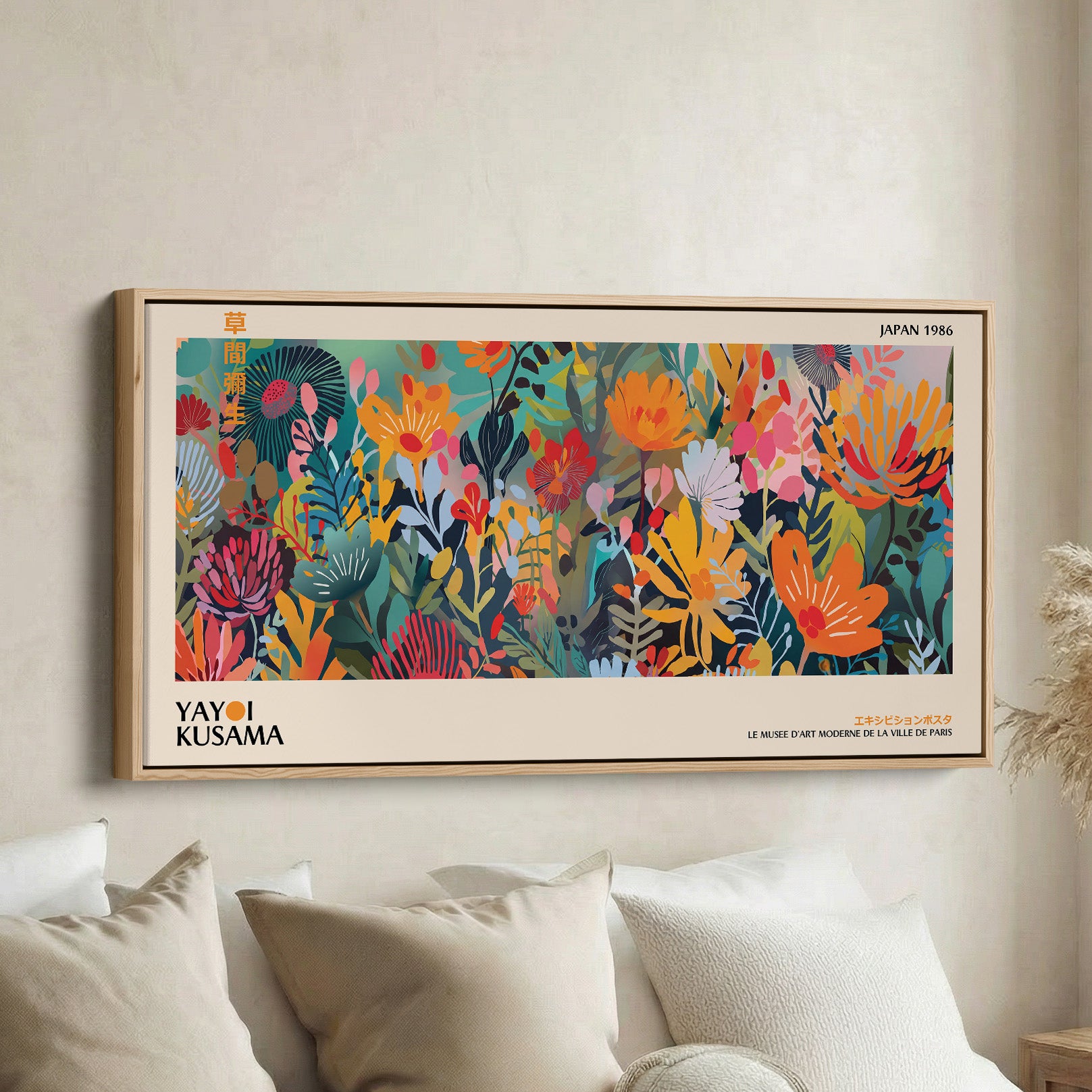 Yayoi Kusama Long Wall Art Bold Botanical Floral Composition Horizontal Canvas Print For Office