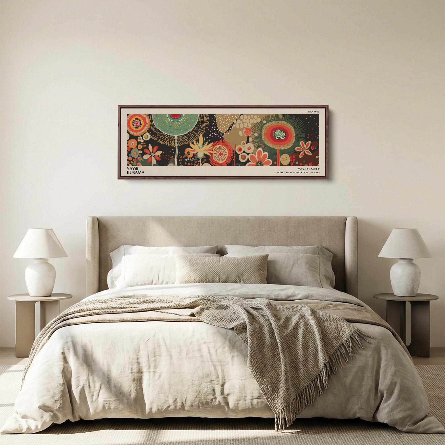 Yayoi Kusama Wide Wall Art Circular Floral Pattern Long Canvas For Bedroom