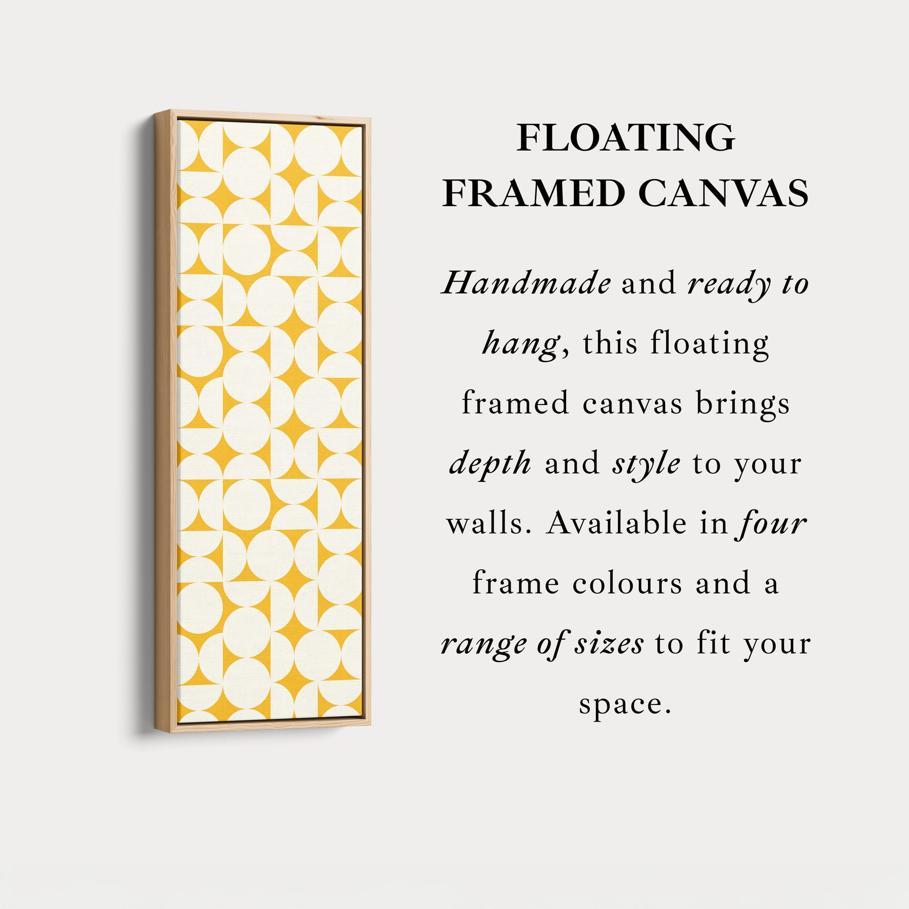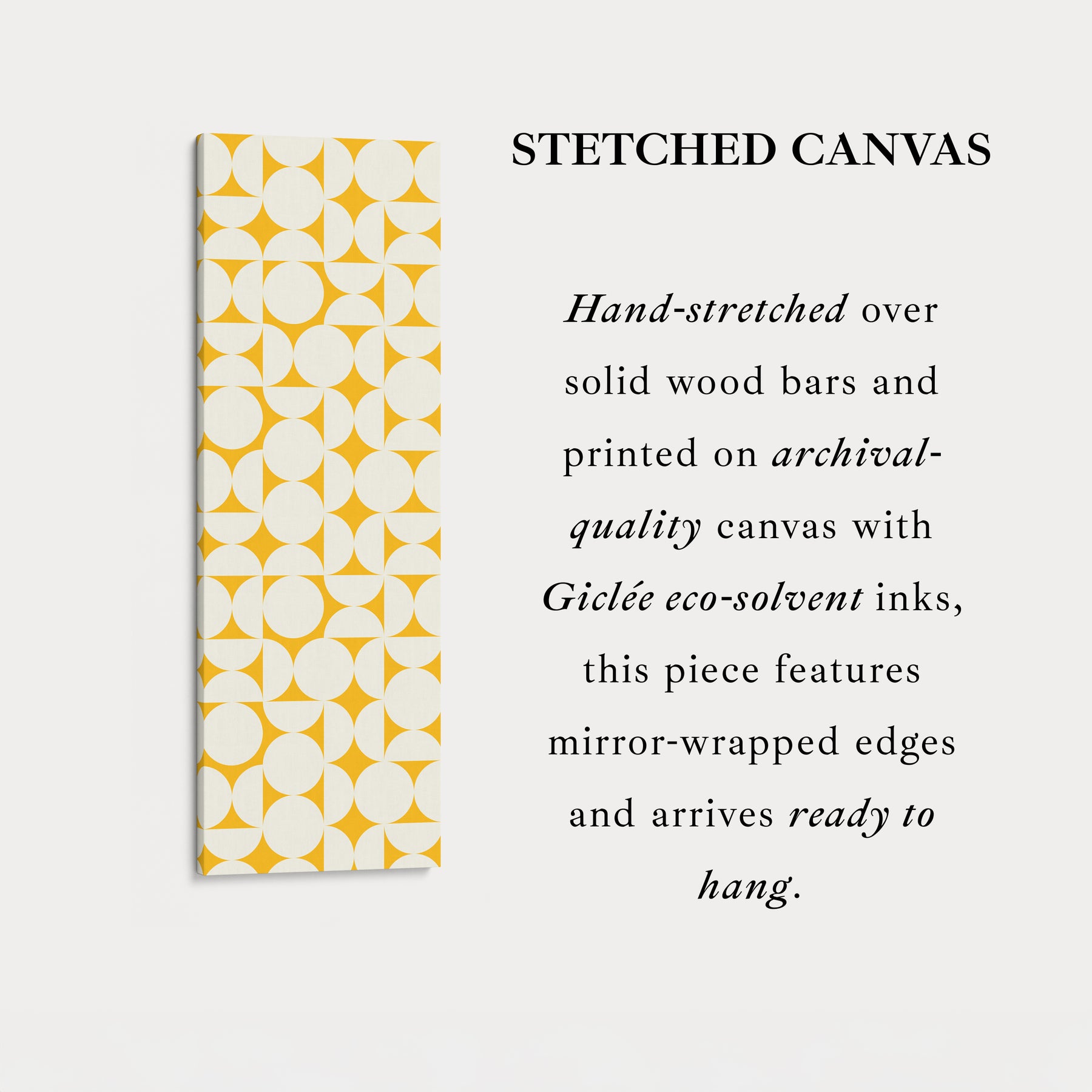 This bold geometric canvas features repeating circular shapes in mustard yellow and beige, creating a retro-inspired rhythm across the tall vertical layout. Perfect as framed wall art for living rooms, offices, or hallways, this long design adds structure and warmth to modern interiors.