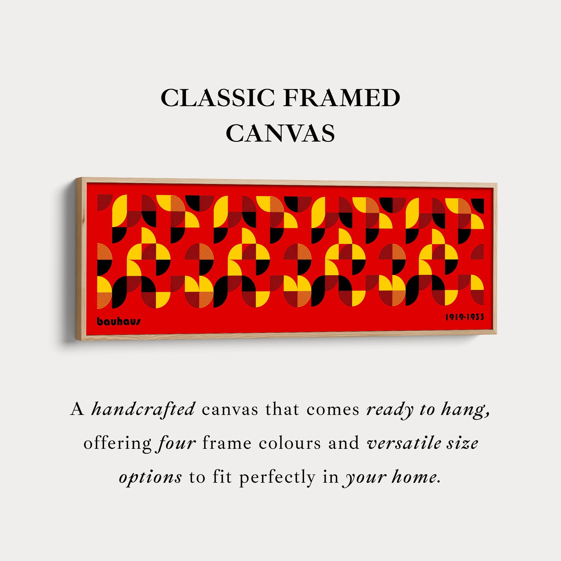 Art géométrique rouge Bauhaus – Toile horizontale encadrée au-dessus du lit