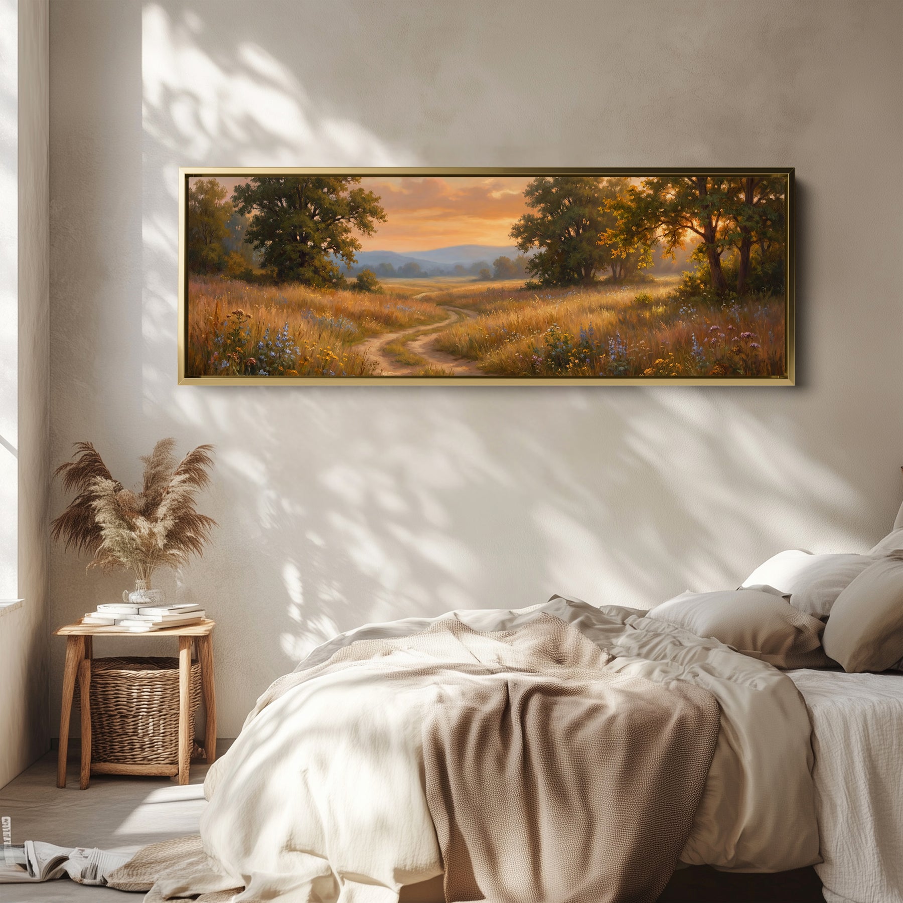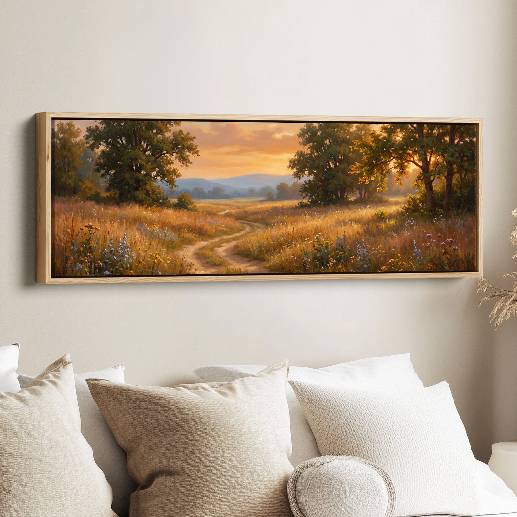 Golden Field At Sunset Wide Canvas Oversized Wall Decor Hallway