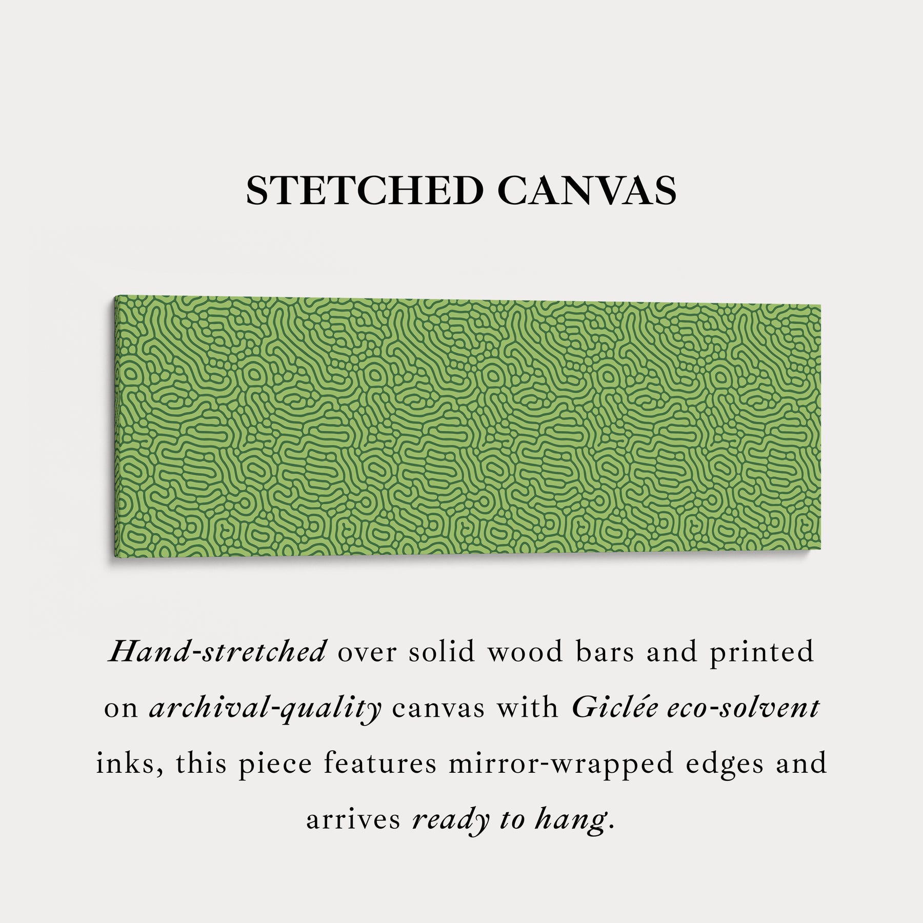 Ideaal voor horizontale wanddecoratie, brengt dit patroon een verfijnde, door de natuur geïnspireerde toets aan brede ruimtes zoals woonkamers, slaapkamers of kantoren. Als groot panoramisch canvaskunstwerk dient het als een sereen middelpunt, dat naadloos opgaat in botanische, minimalistische of eigentijdse interieurs. De combinatie van ingewikkelde koraalvormen en de zachte groene gradient maakt dit kunstwerk een stijlvolle en verfrissende toevoeging aan elke ruimte, perfect voor wie organische patronen met een moderne en elegante esthetiek waardeert.