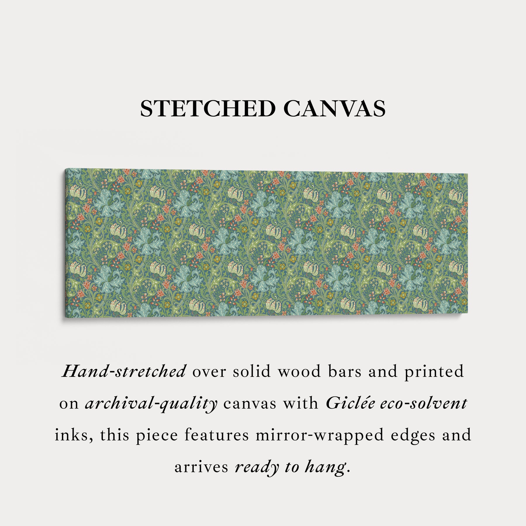 Ideaal voor horizontale wanddecoratie, brengt dit patroon een verfijnde en door de natuur geïnspireerde charme naar brede ruimtes zoals woonkamers, slaapkamers of studeerkamers. Als groot panoramisch canvaskunstwerk dient het als een boeiend middelpunt, dat moeiteloos samengaat met vintage, cottagecore of traditionele interieurs. De combinatie van ingewikkelde bloemrijke details en een uitgebalanceerd kleurenpalet maakt dit kunstwerk een tijdloze en verfijnde toevoeging aan elke ruimte, perfect voor wie klassieke decoratieve patronen met een artistiek tintje waardeert.
