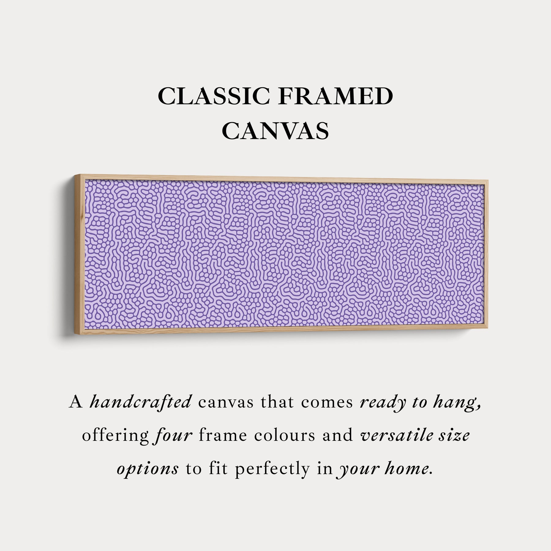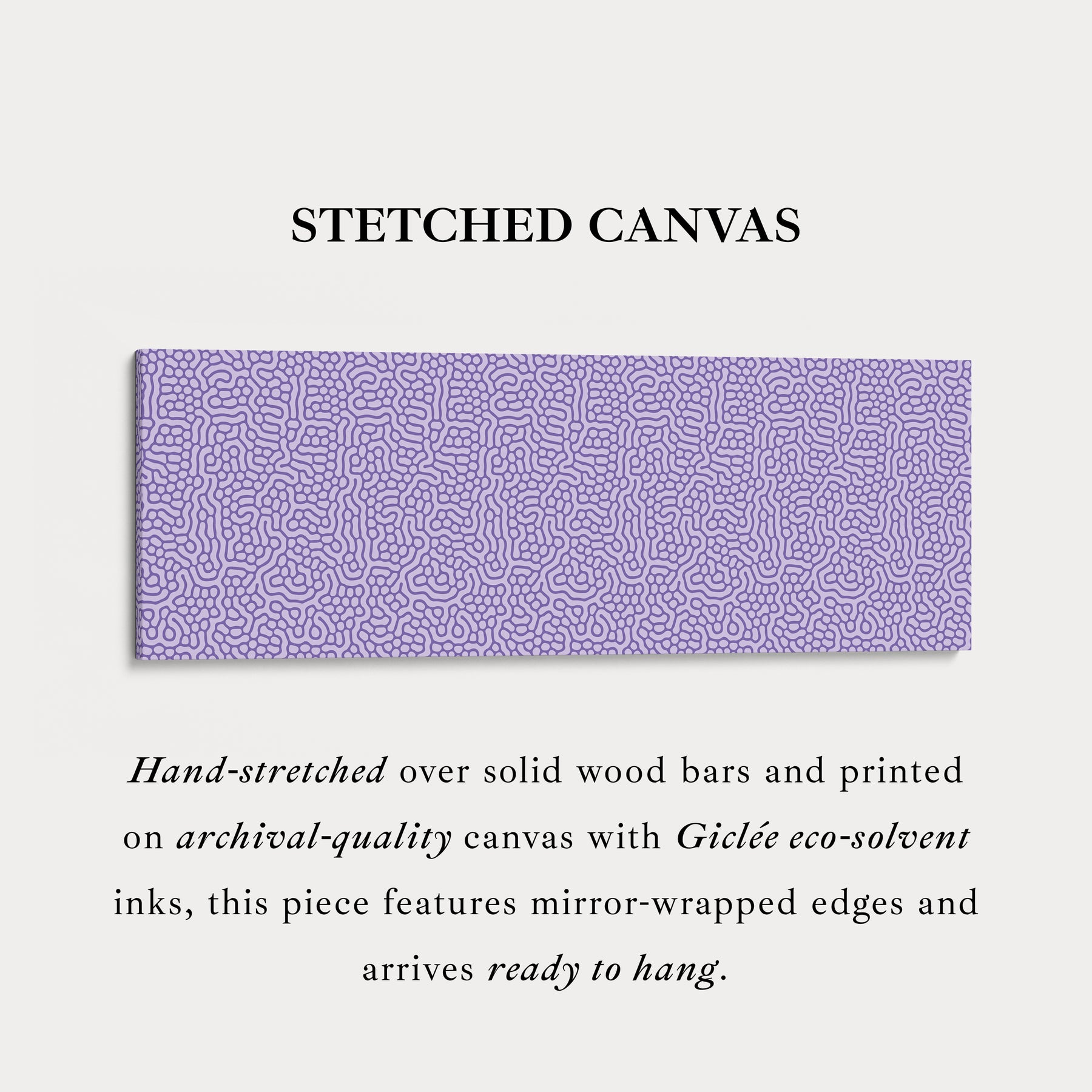 Ideaal voor horizontale wanddecoratie, brengt dit patroon een verfijnde en stijlvolle toets aan brede ruimtes zoals woonkamers, slaapkamers of creatieve studio's. Als groot panoramisch canvaskunstwerk dient het als een boeiend middelpunt, dat naadloos opgaat in eigentijdse, minimalistische of eclectische interieurs. De combinatie van organische koraalvormen en het gedurfde paarse palet maakt dit kunstwerk een uniek en veelzijdig toevoeging aan elke ruimte, perfect voor wie natuur-geïnspireerde patronen met een dramatische en elegante uitstraling waardeert.