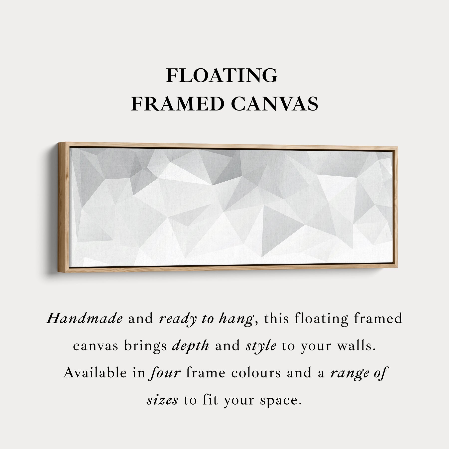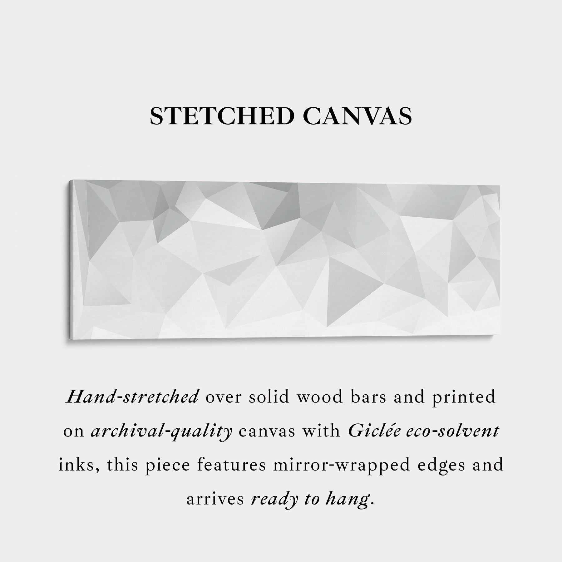 Clean and understated, this geometric horizontal wall art uses overlapping grey and white facets to create depth without clutter. The subtle palette makes it perfect for calm spaces that need visual interest without distraction. Ideal for modern bedrooms, offices, or above a sofa as panoramic wall art.