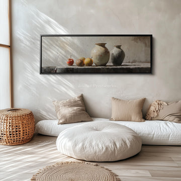 Onze Minimalistische Grote Canvas Kunstcollectie. Deze stukken gaan allemaal over strakke lijnen, zachte kleuren en eenvoudige ontwerpen die moeiteloos aanvoelen maar toch indruk maken. Met zowel Horizontale & Verticale Lange Muurkunstopties werken ze prachtig in smalle ruimtes zoals gangen of boven meubels. Of het nu je woonkamer, slaapkamer of kantoor is, deze doeken brengen een strak, evenwichtig en stijlvol uiterlijk in elke kamer.