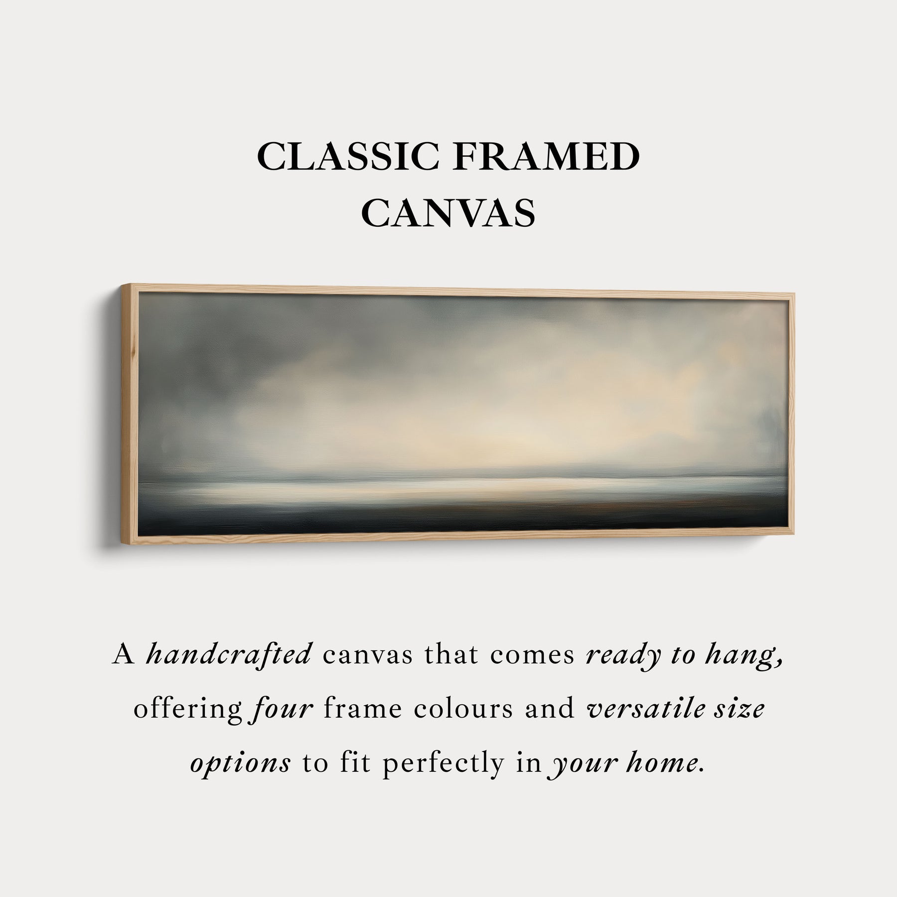 Perfect voor panoramische canvasafdrukken, brengt dit kunstwerk subtiele verfijning in brede ruimtes. Als panoramische wanddecoratie versterkt het grotere muren met zijn rustige en sfeervolle charme. Ideaal als brede wanddecoratie, dient het als een rustgevend middelpunt boven een bank, bed of dressoir. Het langgerekte formaat past prachtig bij horizontale wanddecoratie, terwijl het mistige, atmosferische ontwerp lange smalle wanddecoraties aanvult en een verfijnde en serene accent geeft aan gangen, kantoren of slaapkamers. Dit stuk vangt de tijdloze schoonheid van een mistige horizon met moderne artistieke finesse.