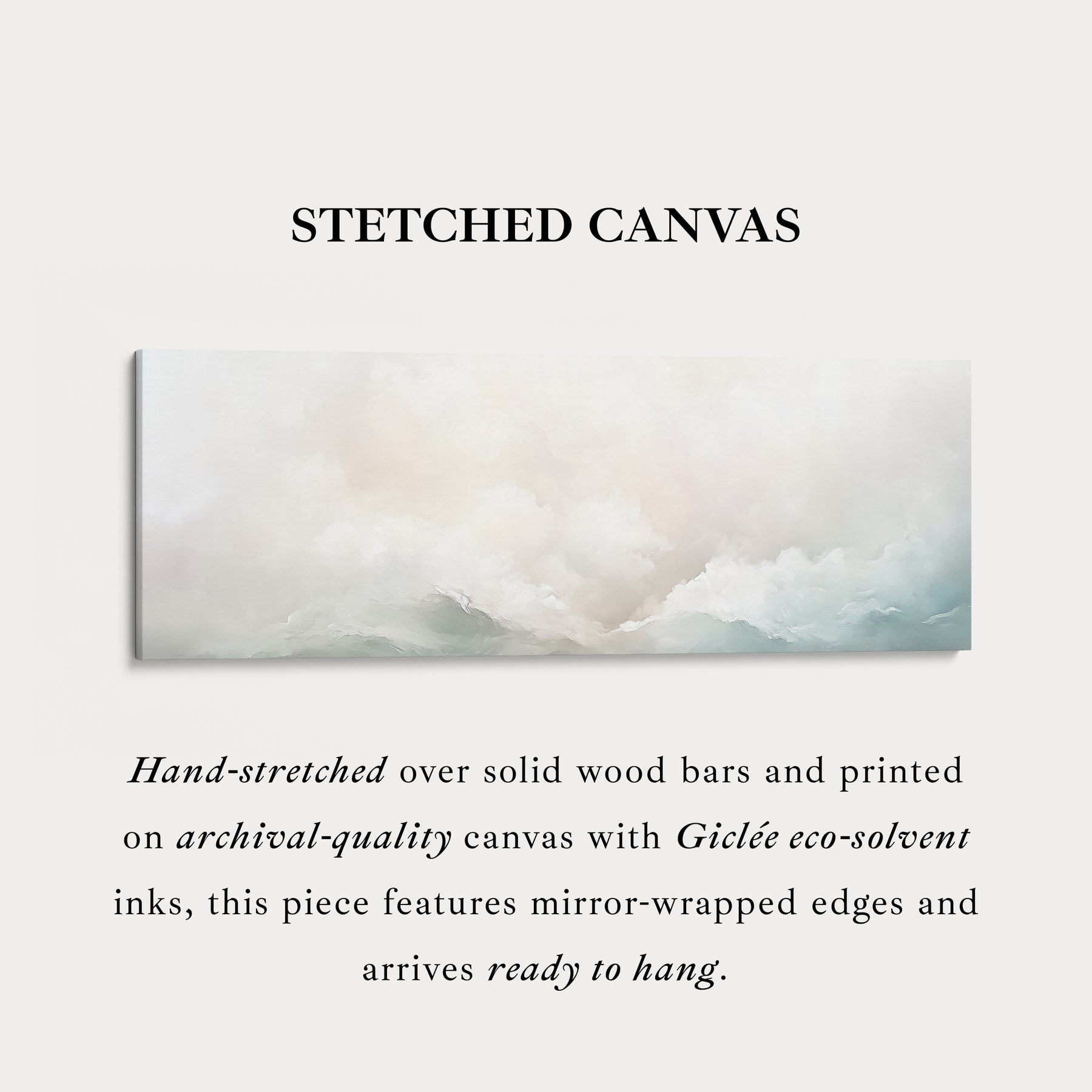 De zachte mix van kleuren en texturen maakt dit stuk perfect voor lange wanddecoratie, horizontale wanddecoratie, of als een groot ingelijst canvas. Ideaal voor woonkamers, slaapkamers of meditatieplekken, het brengt een rustgevend middelpunt dat moderne, minimalistische of boho-geïnspireerde interieurs aanvult.