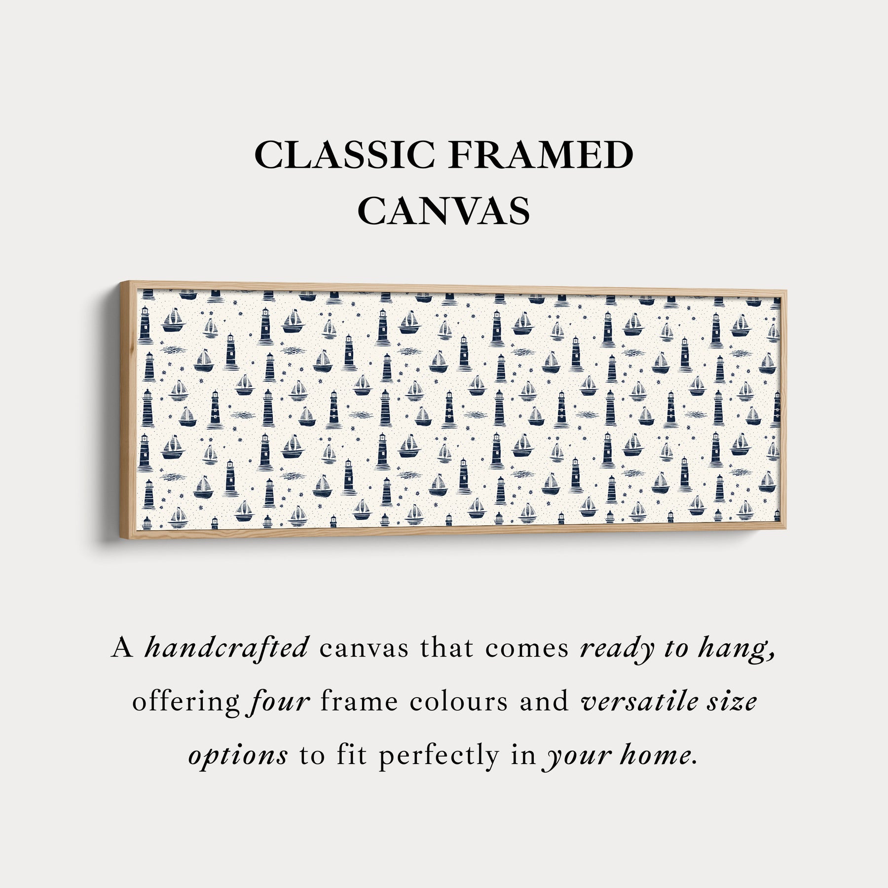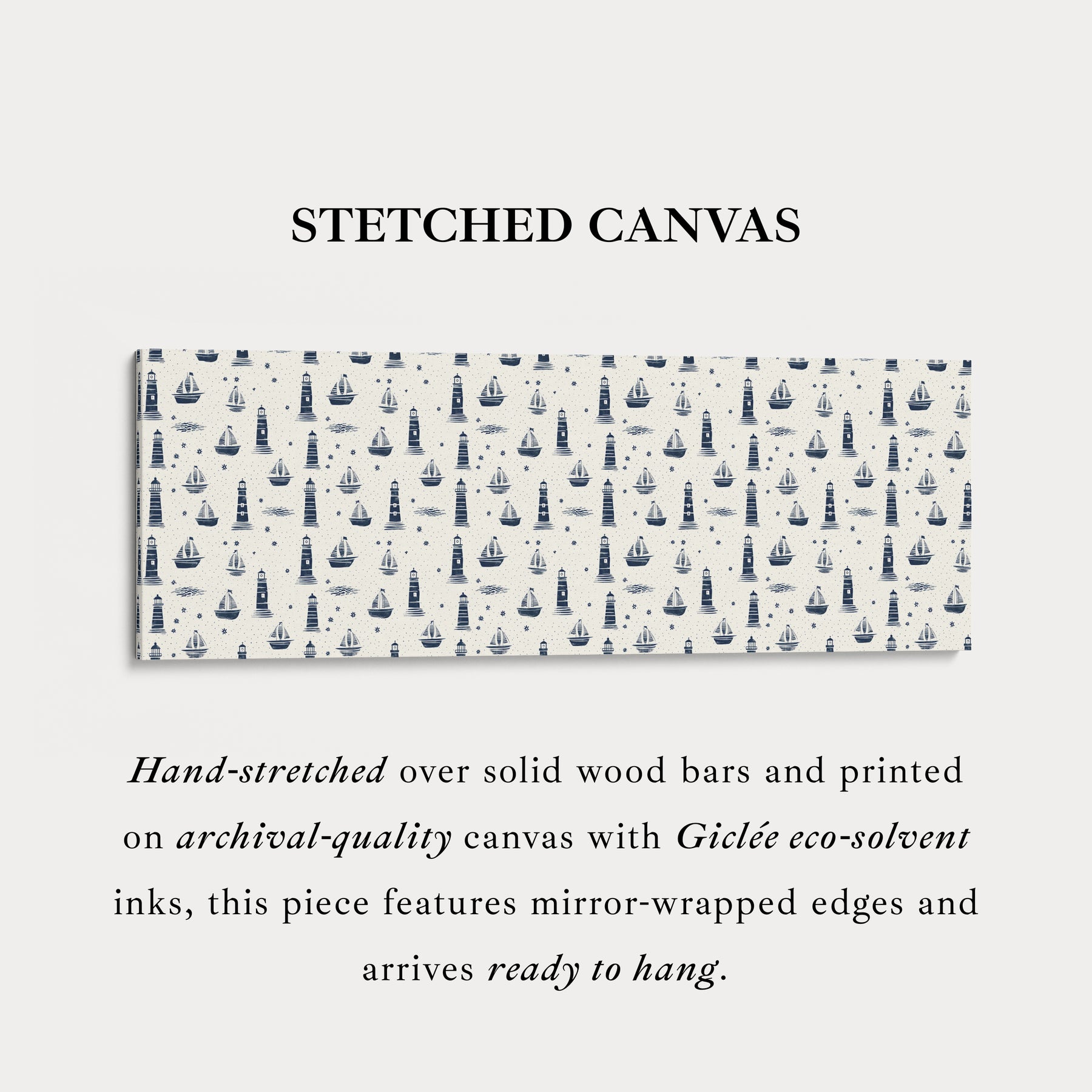 Ideaal voor horizontale wanddecoratie, voegt dit stuk een subtiele maritieme charme toe aan kinderkamers, babykamers of interieurs met een kustthema. Als groot panoramisch canvas dient het als een boeiend middelpunt, dat naadloos opgaat in nautische, minimalistische of vintage decoraties. De ingewikkelde maar eenvoudige details van dit patroon maken het een stijlvolle en veelzijdige toevoeging aan elke ruimte, die de geest van de zee naar binnen brengt.