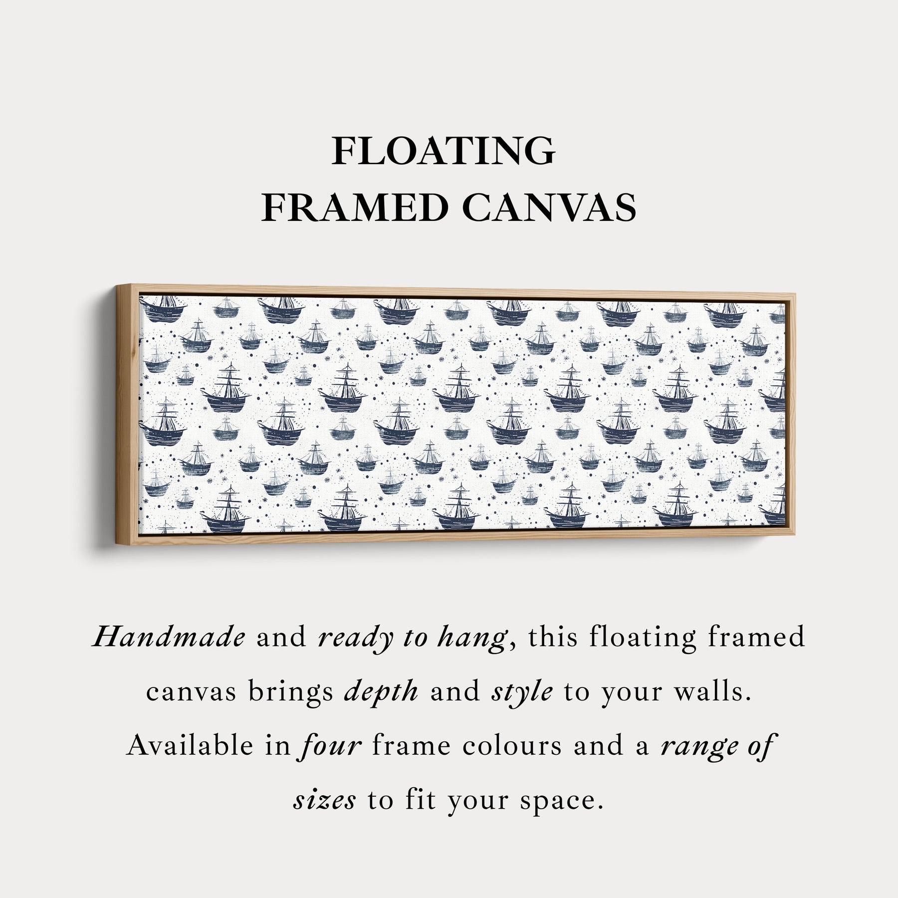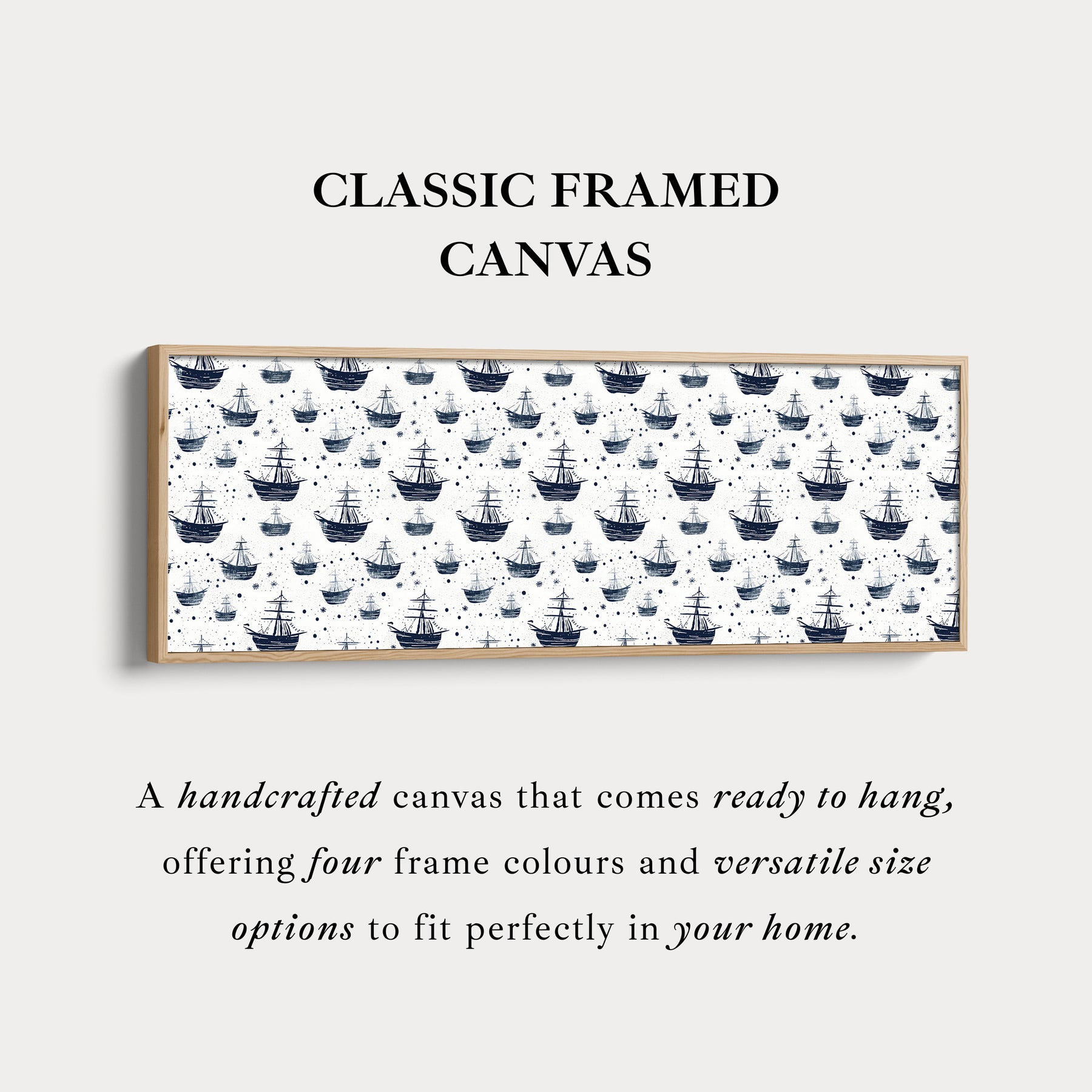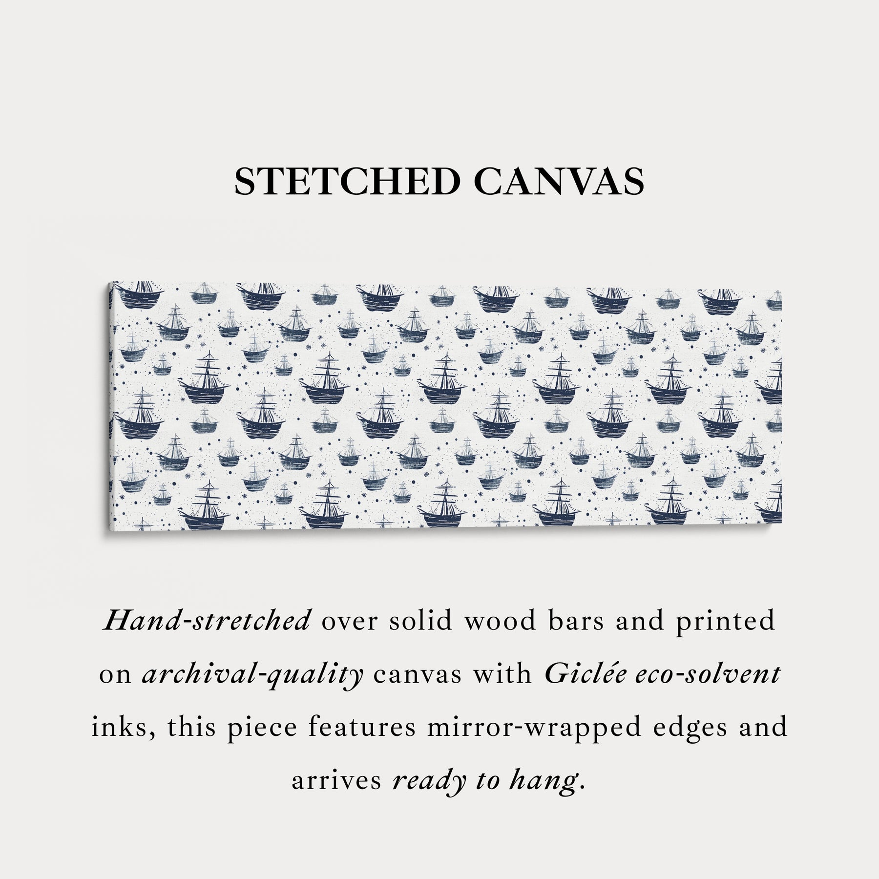 Ideaal voor horizontale wanddecoratie, voegt dit patroon een gedurfde maar speelse nautische toets toe aan kinderkamers, speelruimtes of strandthema-interieurs. Als een groot panoramisch canvas dient het als een charmant middelpunt, dat naadloos aansluit bij moderne, kust- of minimalistische inrichting. De balans tussen gedetailleerde schepen en de open witte ruimte maakt dit kunstwerk een frisse en veelzijdige toevoeging aan elke ruimte geïnspireerd door de zee.