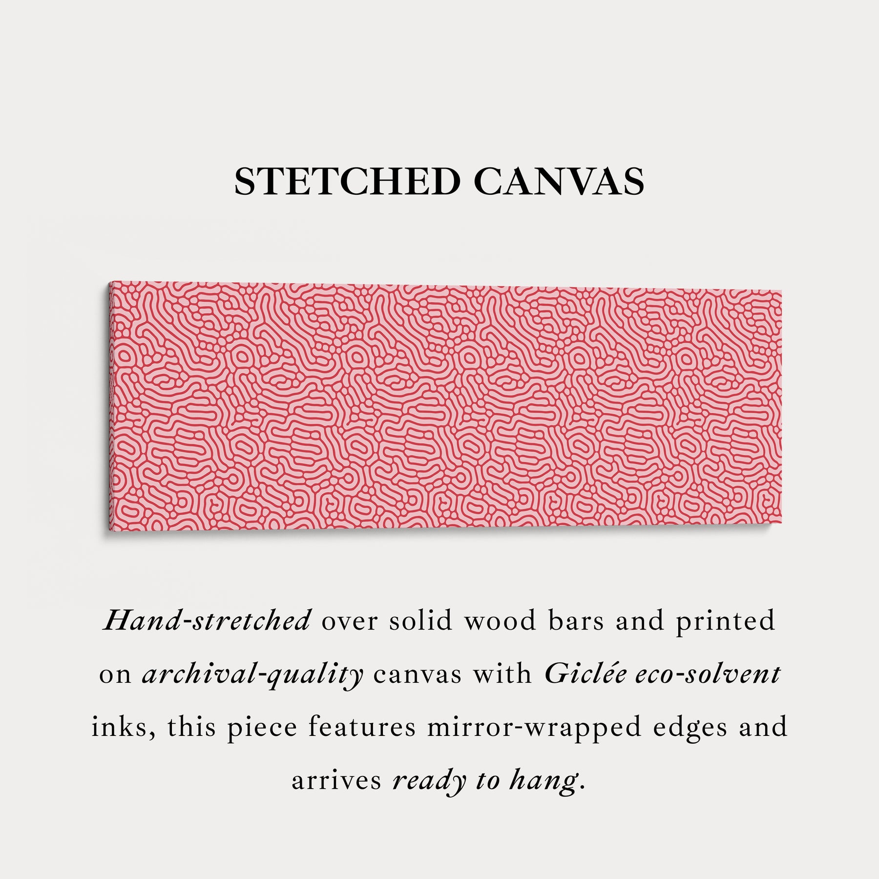 Ideaal voor horizontale wanddecoratie, brengt dit patroon een stijlvolle en eigentijdse touch aan brede ruimtes zoals woonkamers, slaapkamers of creatieve studio's. Als groot panoramisch canvaskunstwerk dient het als een boeiend middelpunt, dat naadloos opgaat in moderne, minimalistische of eclectische interieurs. De combinatie van organische koraalvormen en het warme rood- en roze kleurenpalet maakt dit kunstwerk een gedurfde maar verfijnde toevoeging aan elke ruimte, perfect voor wie natuur-geïnspireerde patronen met een zachte, romantische uitstraling waardeert.