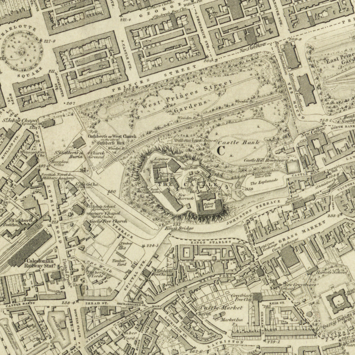 Edinburgh 1853 Map Long Narrow Canvas Wide Wall Art For Bedroom Or Hallway