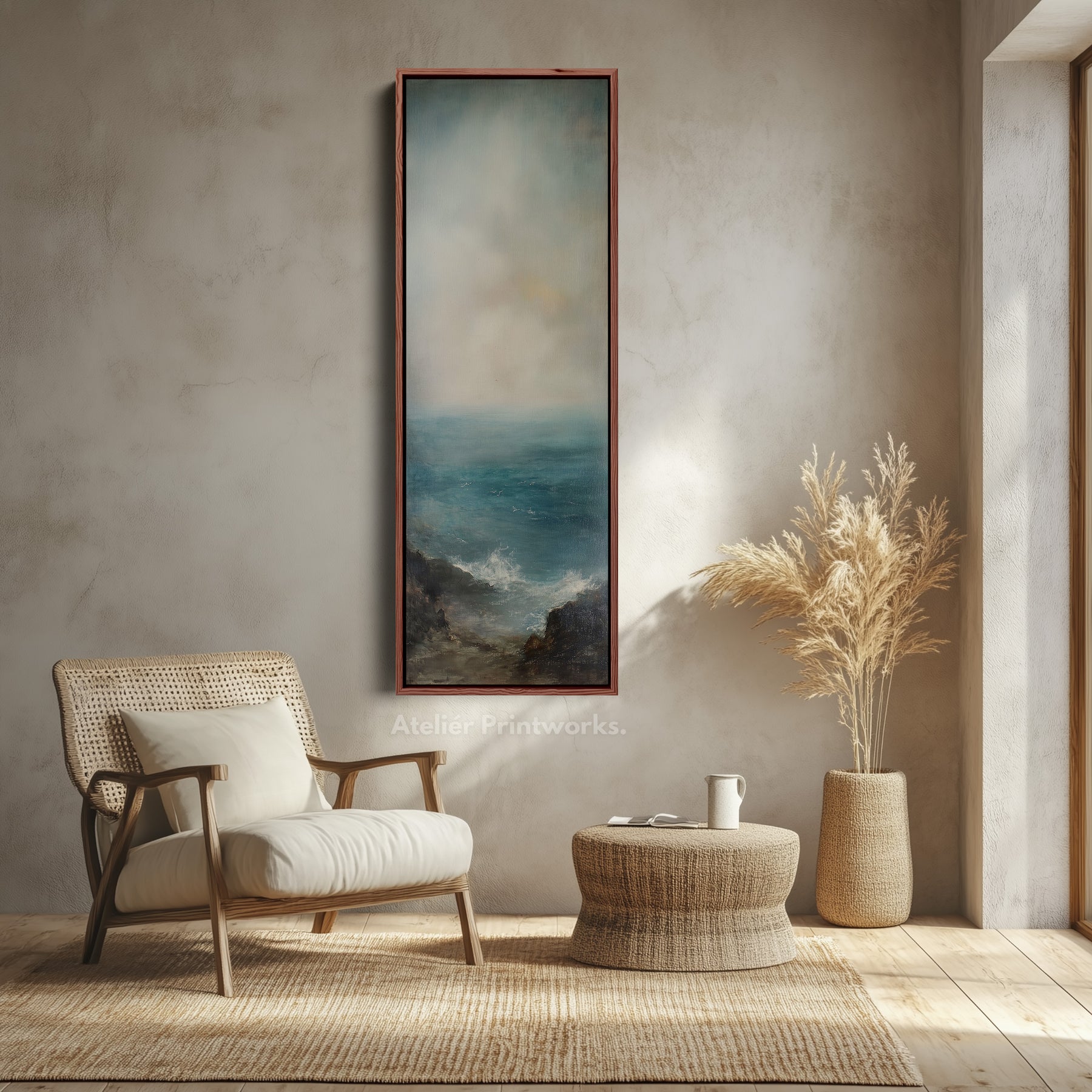 This large canvas wall decor is ideal for creating a calming focal point in any room, while its subtle tones make it versatile for a variety of interiors. Its elongated design works perfectly as long wall art for expansive spaces, and its vertical orientation adds elegance as vertical wall art, ideal for smaller or more intimate areas.